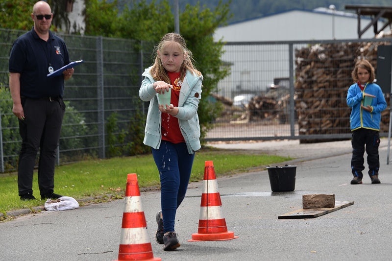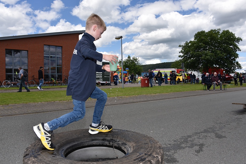 Stahle (TKu). Teamgeist, Geschicklichkeit und Spielspaß waren am vergangenen Wochenende in Stahle gefragt, als sich die Kinderfeuerwehren der Kreise Höxter und Holzminden in einem spannenden Wettkampf gegenseitig gemessen haben. „Sportlichkeit und Fairness waren dabei ebenfalls angesagt“, hieß es von Höxters Stadtkinderfeuerwehrwartin Karina Schönfelder. Gemeinsam mit ihrem Team hat sie anlässlich des fünften Geburtstages der Kinderfeuerwehr Höxter ein „Spiel ohne Grenzen“ mit großer Hüpfburg, einer Fahrzeug- und Geräteschau sowie Kinderspielen und Kinderschminken rund um das Feuerwehrgerätehaus in Stahle ausgerichtet.