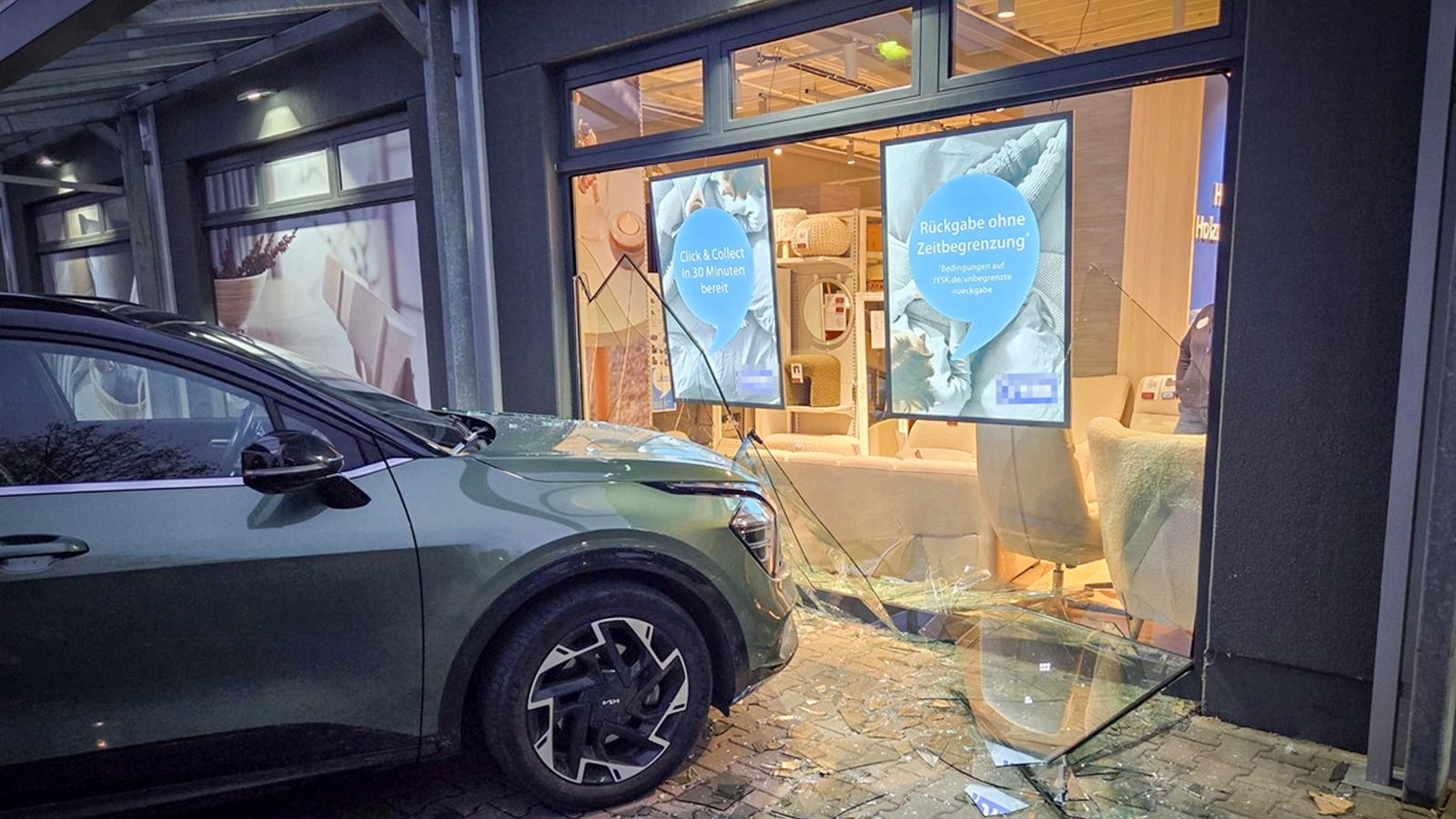 Holzminden (red). Am Donnerstag, 16. Oktober 2025, kam es gegen 18.15 Uhr zu einem Unfall in Holzminden, bei dem eine große Fensterscheibe eines Einrichtungsgeschäfts zerstört wurde.