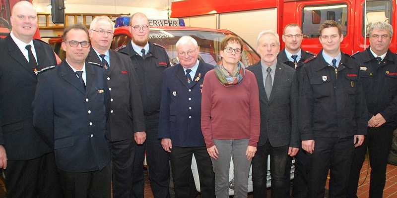 Brandinspektor Michael Dierkes wurde zum Brandoberinspektor befördert. Das Feuerwehrehrenzeichen des Landes NRW in Silber für seine 25-jährige aktive Mitgliedschaft in der Feuerwehr wurde vom Sachbearbeiter für den Feuerschutz Jürgen Kollasch an den neuen Löschgruppenführer Christian Struck verliehen. Eine Ehrung für 50 Jahre Mitgliedschaft in der Feuerwehr erhielt Unterbrandmeister Ewald Struck. Nach der ersten Teilnahme am Leistungsnachweis verlieh Wehrführer Jürgen Schmits das Leistungsabzeichen in Bronze an den Feuerwehrmann-Anwärter Sebastian Ahlborn. Anschließend wurde er zum Feuerwehrmann befördert. Aus dem Jahresbericht des stellvertretenden Löschgruppenführer Matthias Potthoff war zu entnehmen, dass die Löschgruppe im vergangenen Jahr zu 21 Einsätzen alarmiert wurde. Diese gliederten sich in drei Brandeinsätze, fünf Technischen Hilfeleistungen und zwei Menschenrettungen. Hinzu kamen vier Einsätze durch Brandmeldeanlagen sowie sechs Fehleinsätzen.