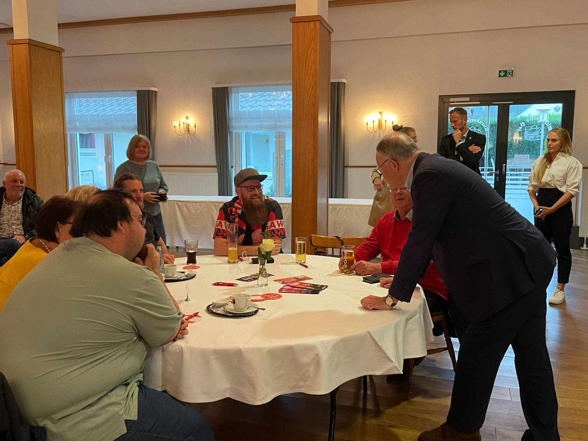 Detlev Knop als Inhaber des Altendorfer Hofes stellte die Frage, ob der Ministerpräsident eine Wiedereinführung der Mehrwertsteuer von 19 Prozent auf Essen und Trinken befürworte oder davon abrate. Der Gastronom betonte dabei das Gastronomiesterben auf dem Land durch die zu geringen Einnahmen. „Der Abbau von Gastronomien im ländlichen Raum ist nicht abhängig von 7 oder 19 Prozent Mehrwertsteuer, sondern dem Trend zur Individualisierung verschuldet. Denn dadurch bleiben die Menschen lieber zu Hause, was sich in Corona sehr stark etabliert hat. Vergleichbar ist dieses Problem mit dem Online-Shopping“, äußerte sich Stephan Weil diesbezüglich.