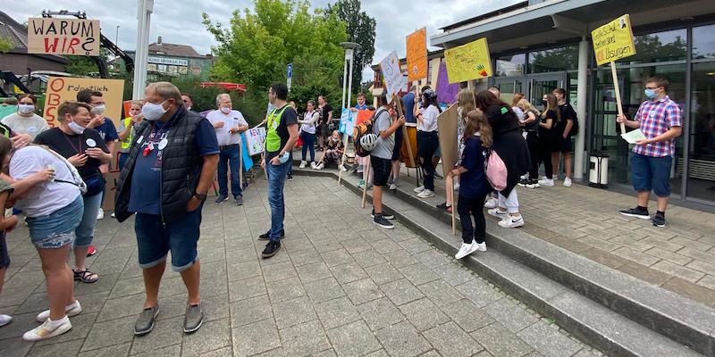 OBS Bevern demonstriert erneut vor der Stadthalle Kreis Holzminden (lbr/kp). Die OBS Bevern kämpft weiter für den Erhalt ihres Schulstandortes. Zum wiederholten Mal ging es auf Traktoren und mit Plakaten ausgestattet zur Stadthalle nach Holzminden. Dort findet seit 16 Uhr die Kreistagssitzung statt. Laut aktuellem Vorschlag soll die Oberschule zum Schuljahr 22/23 auslaufend aufgehoben werden. In der heutigen Sitzung soll darüber abgestimmt werden.