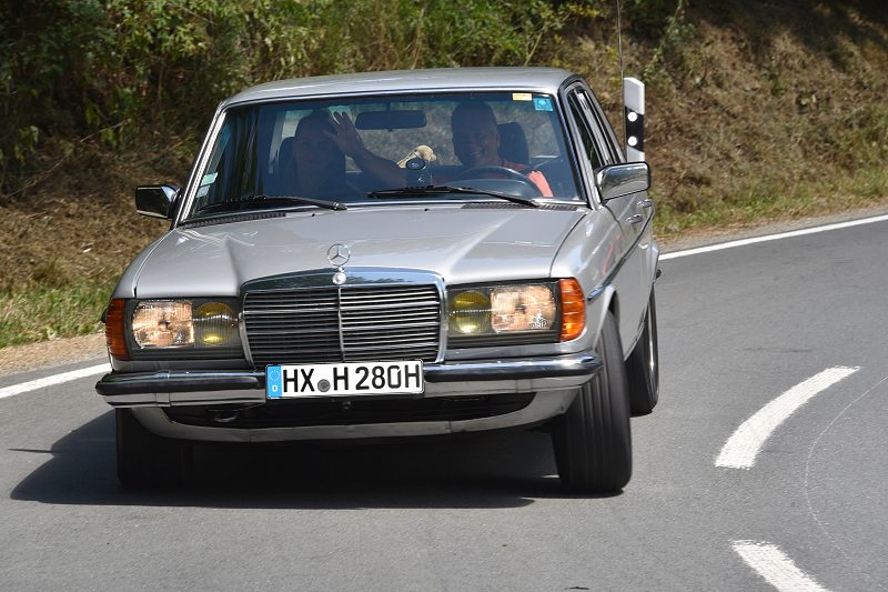 Ottbergen (TKu). Fast 100 Sport- und Formelwagen, Old- und Youngtimer sowie andere „Hingucker-Fahrzeuge“ aus ganz Deutschland sind am Wochenende beim neunten ADAC Weser-Bergpreises Revival auf der L890 zwischen Ottbergen und Bosseborn an den Start gegangen. Hunderte Zuschauerinnen und Zuschauer säumten die Rennstrecke und schauten begeistert zu, wie die Fahrzeuge hintereinander den Berg hinauf fuhren und während der 3,3 Kilometer langen Strecke für Aufsehen sorgten. 170 Höhenmeter galt es dabei zu überwinden. Ein Hingucker war auch der Oldtimer von Jens Schröder aus der Nähe von Hamburg. Er fährt einen 200er-Mercedes aus dem Jahre 1967, auch Heckflosse genannt. Schon sein Vater sei Rennfahrer gewesen und habe die Hamburger Stadtparkrennen bestritten, wie Jens Schröder auf Anfrage von Höxter-News erklärt.