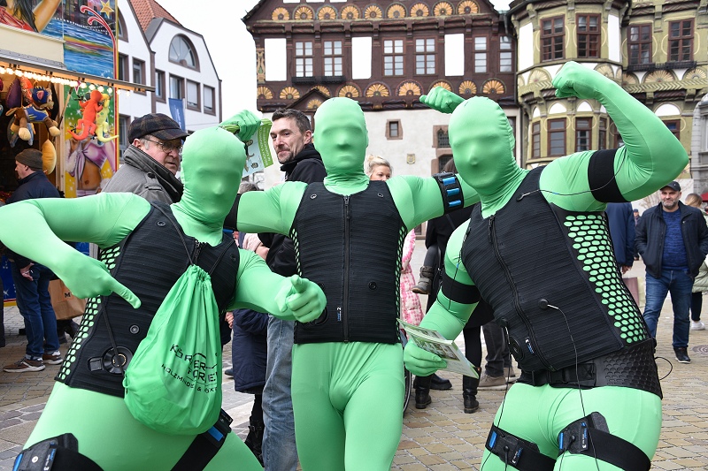 Höxter (TKu). Die Sonne mit Musik und Tanz herbeirufen zum Höxteraner Frühling am vergangenen Sonntag hat funktioniert. Ganz langsam ist der Frühling aus seinem Winterschlaf erwacht. In luftiger Kleidung und mit Blumen in den Kostümen haben die Tanzetage Höxter und der PetriGanztag den Höxteraner Frühling schon zu Beginn des „Höxteraner Frühlings“ eingeläutet. Zunächst war das Wetter grau und kalt, als die Musikschule auf der Marktplatzbühne spielte. Die Sonne kämpfte sich aber zum Nachmittag durch die Wolken hindurch und es wurde mit der Zeit etwas wärmer. Mit viel Programm, verkaufsoffenen Geschäften, Info- und Verkaufsständen sowie floralem Ambiente hat die Werbegemeinschaft Höxter wieder hunderte bis tausende Menschen in die Höxteraner Innenstadt gezogen. Ein „Eyecatcher“ in Größe und Farbenpracht war in diesem Jahr der laufende Gartenwalkact „La Fleur“, alias die „Blume auf Stelzen“ mit stolzen 3,40 Meter Höhe und 2,50 Meter Breite. Die 25 floralen Inseln hätten in diesem Jahr noch mehr herausgestochen, als in den Jahren zuvor, meinte eine Besucherin. Ein historischer Stuhl mit altem Fernsehergehäuse auf einer Blumeninsel, der zu einem Insektenhotel umfunktioniert worden war, fand sie als eine besonders pfiffige und nachhaltige Idee. Die Blumeninseln waren zumeist alle von den Studierenden der Technischen Hochschule OWL entworfen worden. Musikalisch sorgten die „Street Paraders“ am Sonntag mit Dixieland-Sound für gute Unterhaltung an jeder Straßenecke. Außerdem wieder mit im Boot waren neben vielen Informations- und Verkaufsständen auch die Rettungshundestaffel Dreiländereck-Holzminden und Castellos Puppentheater sowie die „Speedy cUP!s“, eine Abteilung des MTV Boffzen, die bei Speed-Stacking-Vorführungen gezeigt haben, was in ihnen steckt.