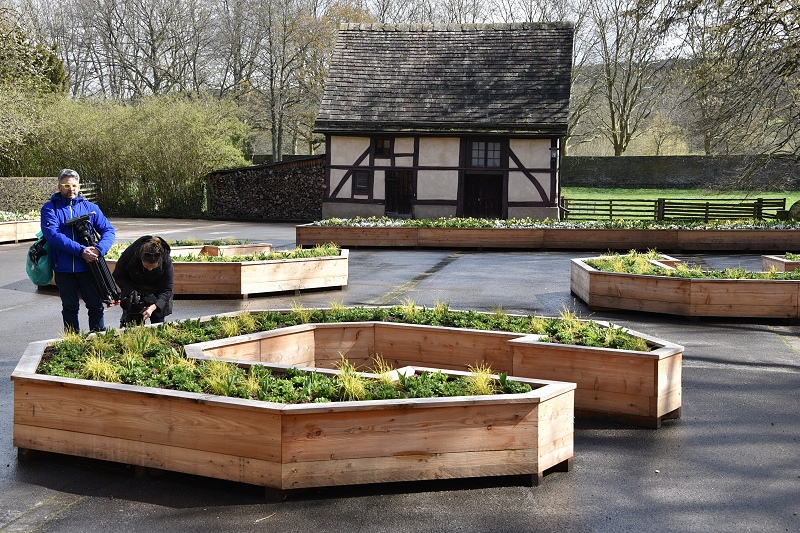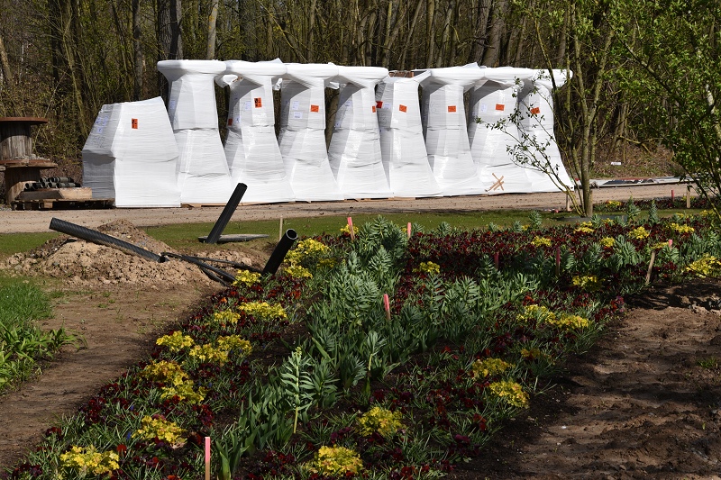 Höxter (TKu). Für die Presse hat die Landesgartenschau Gesellschaft die letzten drei Rundgänge über das Landesgartenschau-Gelände organisiert, bevor die LGS feierlich eröffnet wird. Es stürmt und regnet, doch für die Eröffnung der Landesgartenschau am 20. April mit NRW-Ministerpräsident Hendrik Wüst hat der Wettergott bereits Sonne satt und mehr als 20 Grad Celsius angekündigt. An vielen Stellen auf dem LGS-Gelände sieht es aktuell noch aus wie auf einer Baustelle, doch die Planer versprechen, dies in wenigen Tagen fertig zu stellen bis zum 20. April, bis auf den großen Parkplatz vor Corvey. Allerdings werde bei der Eröffnung noch nicht alles grün sein und aufblühen. Das gehöre aber zu einer normalen Entwicklung beim „Gärtnern“ dazu, überall Rollrasen zu verteilen, das sei keine nachhaltige Angelegenheit, wie Rose weiter ausführt. Die Landesgartenschau werde ein „wachsendes“ Event sein. „Warten sie mal noch zwei Wochen ab, dann könne im Remtergarten bereits eine wahre Blütenpracht bestaunt werden“, betont Klaus Werner Rose. Laut Jan Sommer zeichne sich die Landesgartenschau in Höxter durch ihre besonders zeitgenössische Landschaftsarchitektur aus und sehr naturnahes, ressourcenschonendes und insektenfreundliches Gärtnern: „Die Materialien kommen zumeist alle aus der Region, die Flächen werden mit Grundwasser bewässert und gedüngt wird so gut wie gar nicht“, meint LGS-Geschäftsführer Sommer. Probleme habe lediglich der viele Regen der vergangenen Wochen bereitet, was beispielsweise die Befahrbarkeit der Flächen durch Baufahrzeuge beträfe. Durch das Hochwasser der Weser seien außerdem einige Tulpenzwiebeln auf etwa 200 Quadratmetern Fläche weggeschwommen. Das bezeichnete Bauüberwacher Rose zwar als ärgerlich, es stelle allerdings kein großes Problem dar, weil die bepflanzten Hauptflächen höher lägen, wie Jan Sommer und Klaus Werner Rose erklären.