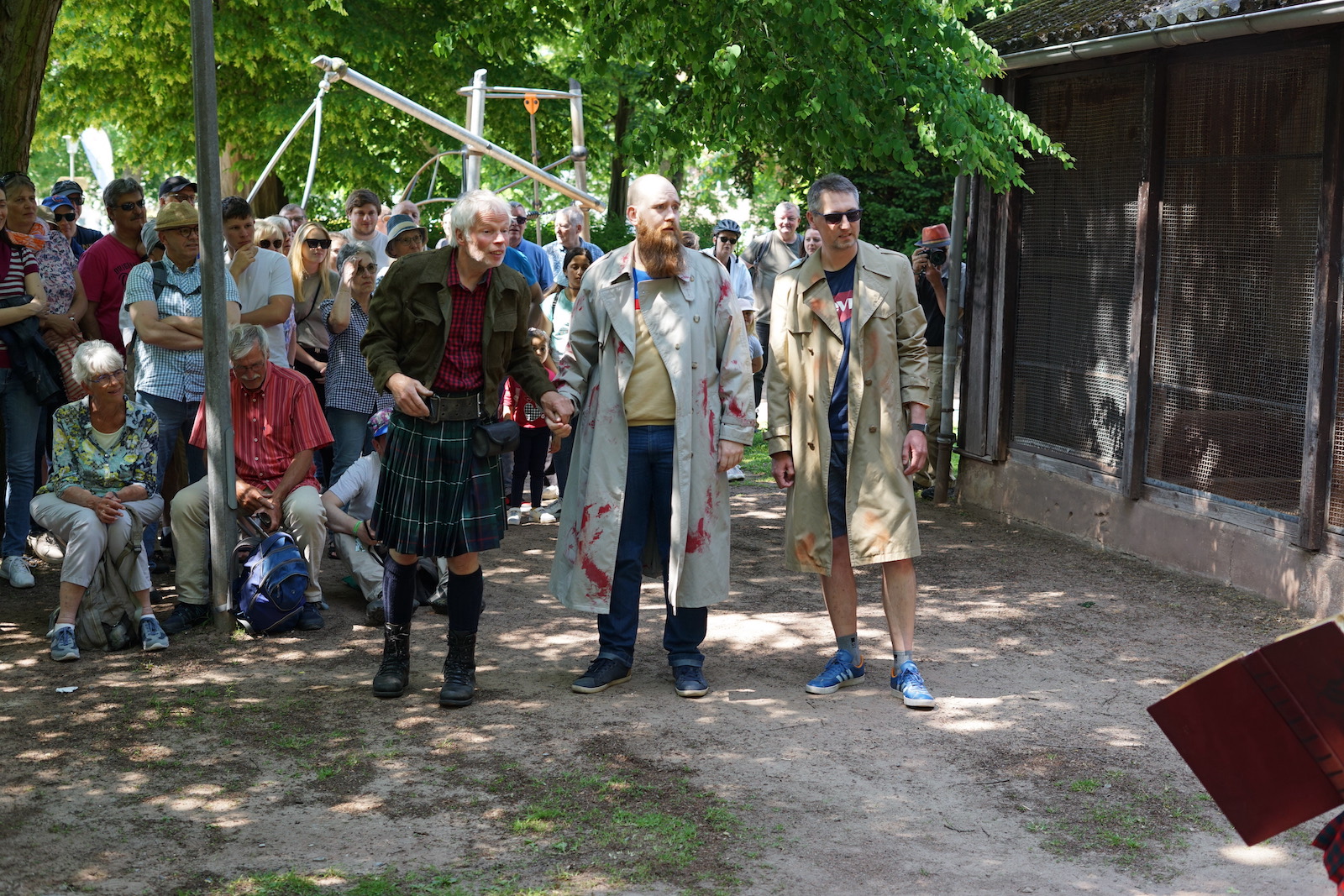 An den Teichen gab es Shakespeare take away zusehen. In der Aufführung des niederländischen Regisseurs und Schauspielers Norbert Busschers schlüpfen die Zuschauer selbst in die Rollen von König oder Königin, Narren und Hexen, Tyrann oder Mörder und hatten sichtlich Spaß dabei.