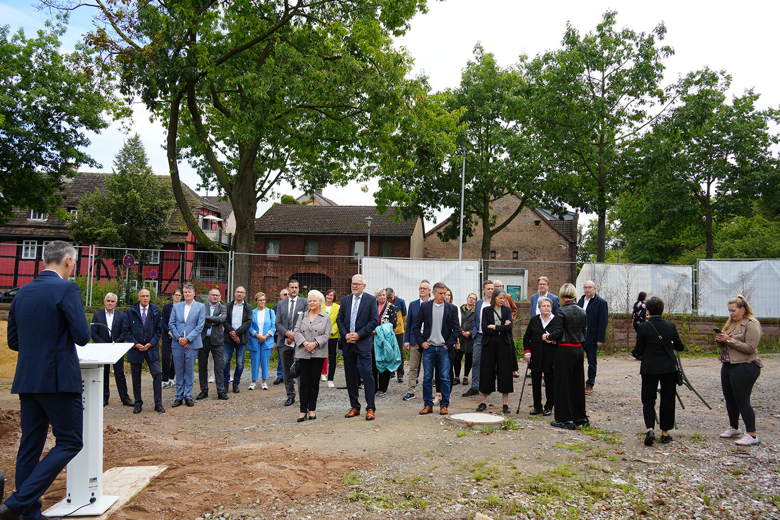 Für das Pflanzen des Baumes versammelten sich Roswita Schwager, Ehefrau von Ralf Schwager, Doktor Grit Dommes, Nichte des verstorbenen Unternehmers, Matthias Kumlehn, Geschäftsführer des Kaufhauses und Bürgermeister Christian Belke samt Ehrengästen auf einem nebenan liegenden Platz des Weserhotels. „Vor über 100 Jahren wurde unser Unternehmen im beschaulichen Stadtilm in Thüringen gegründet. Seitdem hat sich viel ereignet und auch viel verändert“, blickt Kumlehn in seiner Rede zurück. Dabei geht er auf wichtige Daten ein, wie die Flucht der Unternehmerfamilie im Jahr 1949 in den Westen und den Neubeginn in Holzminden. Auch auf den Bau und die Erweiterung des Kaufhauses in Holzminden blicke man gerne zurück. Mittlerweile ist man mit acht Häusern an sechs Standorten in Niedersachsen, Nordrhein-Westfalen und Thüringen vertreten. Stolz ist man auch auf seine 227 Mitarbeiter. „Manche von ihnen sind schon sehr lange mit dabei. Ich zum Beispiel schon seit 30 Jahren und es macht mir immer noch sehr viel Spaß“, freut sich Matthias Kumlehn.