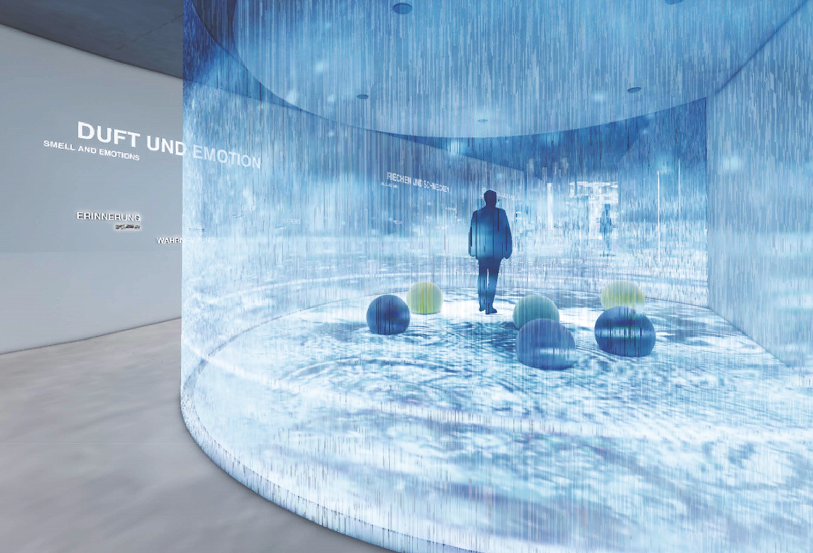 Eine weitere Station wird die Duftorgel werden. Hierfür stellt Symrise verschiedene zur Verfügung, die auf einem halbrunden Tisch aufgestellt werden. Dabei hat man die Möglichkeit, die verschiedensten Düfte zu erkunden und gegebenenfalls neue zu entdecken. Nebenbei hat man die Möglichkeit bei einer Art Automat sein eigenes Parfüm virtuell zu erstellen. Gezielte Fragen führen dabei zu dem eigenen Wunschduft, der dann anschließend von dem Automaten freigegeben wird. Gefällt einem der Duft, so kann man diesen beim abschließenden Sensoria-Shop erwerben.