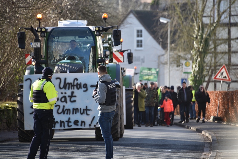 Die Kritik richtete sich nicht nur gegen die Aufhebung der KFZ-Steuerbefreiung und die Steuerrückerstattung beim Agrardiesel. In den Ansprachen der Rednerinnen und Redner aus verschiedenen Bereichen wie Landwirtschaft, Handwerk und Pflege wurde die Regierung für ihre aus Sicht der Demonstranten fehlgeleitete Sparpolitik scharf kritisiert. Es wurde betont, dass das Geld am falschen Ende gespart werde, während sogenannte "unsinnige Projekte in aller Welt" finanziert würden. Während des Protestmarsches war immer wieder der Slogan "Neuwahlen für Deutschland – Die Ampel muss weg" zu hören. Antonius Tillmann, Vorsitzender des Landwirtschaftlichen Kreisverbandes Höxter, reagierte spontan auf diese Rufe und verwarf seine vorbereitete Ansprache. Er äußerte zwar Zweifel an der Sinnhaftigkeit der Forderung, hoffe jedoch auf eine politische Kehrtwende seitens der Regierung. Tillmann betonte die große Angst der Landwirte um ihre Zukunft und forderte eine dauerhafte und verlässliche Perspektive.