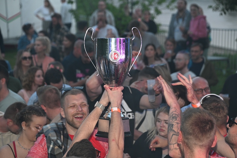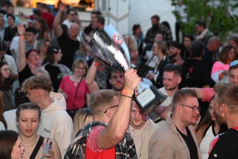 Ebenfalls auf der Bühne stand die aufstrebende DJ-Newcomerin Nina Kuhlmann. Die 18-jährige Abiturientin aus der Nähe von Rahden hat ihr musikalisches Talent von ihrem Vater geerbt und mischt EDM, Techno und House-Musik mit bekannten Chart-Hits, die die Menge zum Tanzen brachten. Die Stimmung war auf dem Höhepunkt, wie die begeisterten Festivalgängerinnen Diana Freytag, Nadine Wiesemann, Alexandra Ernst und Sandra Vogt bestätigen. "Was für eine Mega-Party", schwärmten die Party-Fans. Auch DJ Tweezy heizte dem Publikum kräftig ein, indem er eine Mischung aus HipHop, Pop, Hypertechno und Hardstyle präsentierte. Zum krönenden Abschluss des Abends trat das Musiktrio Select Avenue auf, bestehend aus Benjamin "Bentfly" Quednau und Dario "Drio" Großmann. Natürlich durfte ihre erste Single "Think About Me" nicht fehlen, und die Fans belohnten sie mit tosendem Applaus. Das "Heaven can wait" Festival war ein fulminanter Start in die Open-Air-Saison auf der Weserscholle und verspricht einen Sommer voller mitreißender Musik und unvergesslicher Momente. Ein Team des SV-Höxter feierte ihren jüngsten Sieg.