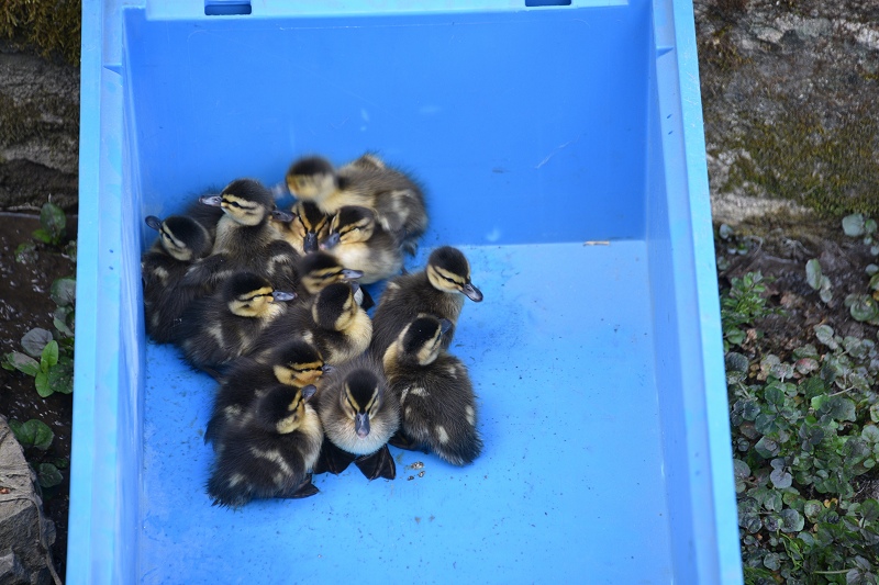 Höxter (TKu). Entenrettung aus dem Grubebach: Der Löschzug Höxter, der Freiwilligen Feuerwehr, hat am Vatertag (Christi Himmelfahrt) unter der Einsatzleitung von Oberbrandmeister Patrick Warneke eine Entenfamilie aus der Grube gerettet. 15 Entenküken nebst Entenmama waren im Grube. Bach in Richtung Weser abgetrieben. Auf dem weiteren Weg in Richtung Weser gibt es zwei Wehre und Wasserfälle, die für die Entenfamilie tödlich hätten enden könnten. Das haben Passanten erkannt und die Polizei informiert, die wiederum die Feuerwehr zur Rettung der Entenfamilie in die Grubestraße gegenüber dem Seniorenheim alarmiert hatten. Anderthalb Stunden versuchten die Feuerwehrmänner und -frauen die Enten einzufangen, was kein leichtes Unterfangen gewesen ist. Ein Küken war so schwierig einzufangen, dass es mit einem Wasserstrahl aus dem nicht offenen Teil der Grube in den Kescher getrieben werden musste. Die Feuerwehrleute warteten vor Woolworth bereits mit Wathosen, um das letzte Küken einzufangen. Danach brachten sie alle 16 Küken zur Weser, wo die Entenmama ihre Kinder in Empfang nahm. Die Resonanz bei diesem Einsatz war groß, viele Schaulustige blieben stehen und verfolgten den Rettungseinsatz.