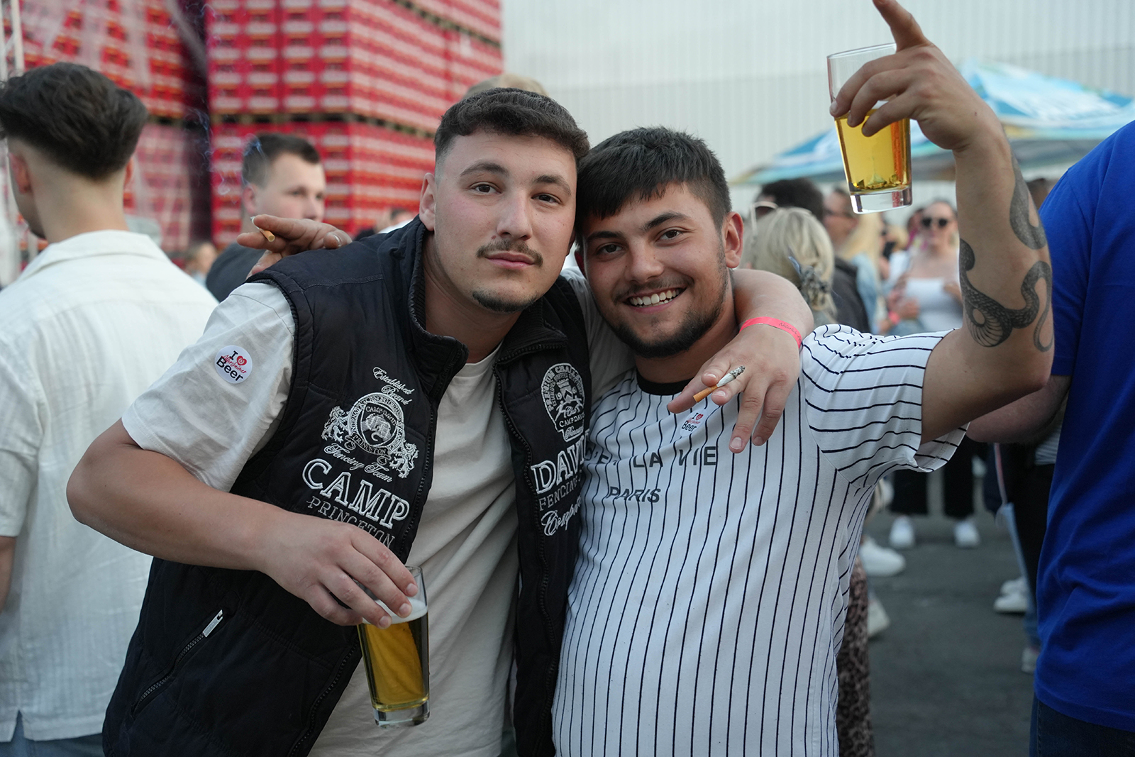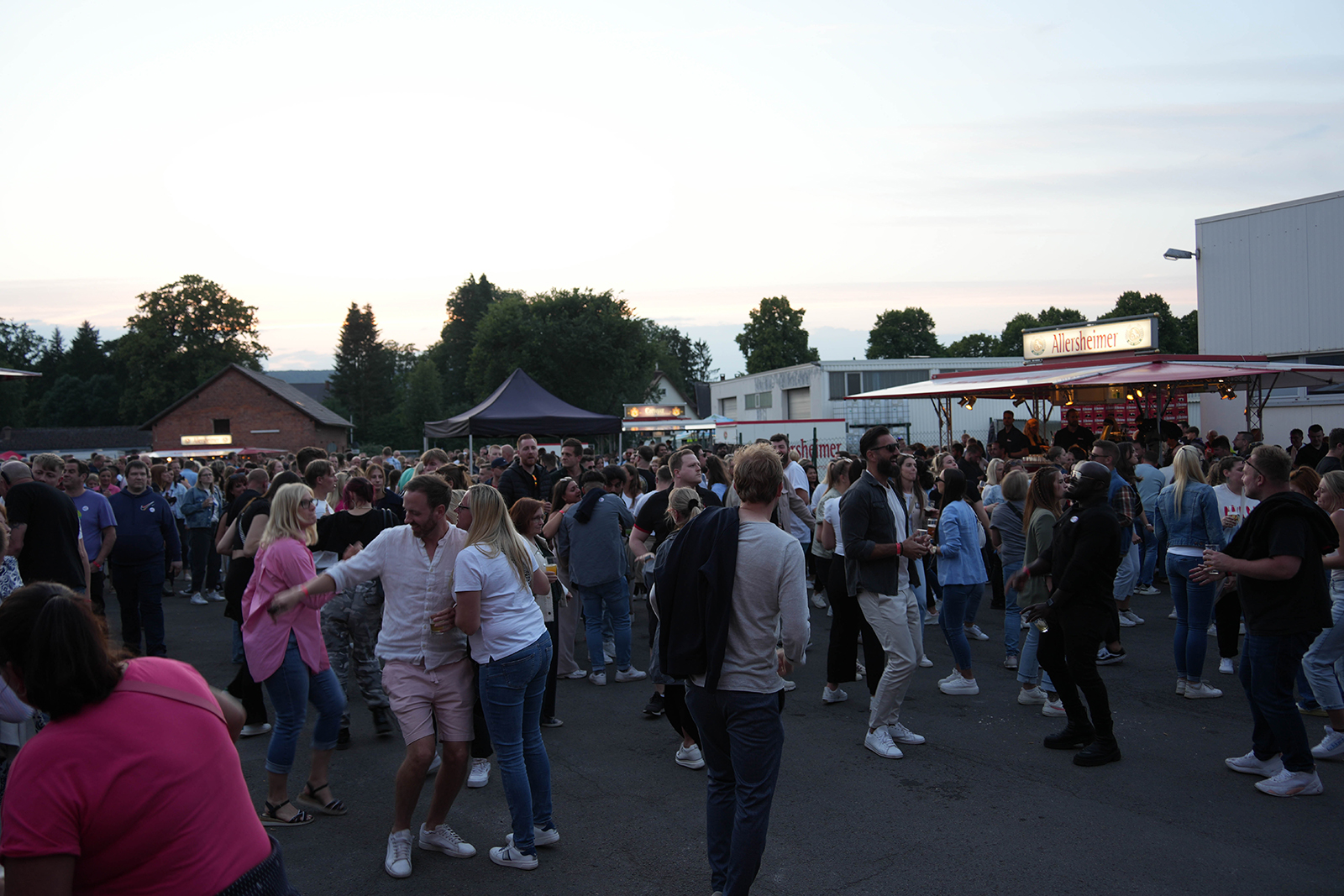 Allersheim (zir). Passend zu angenehmen Temperaturen und praller Sonne zeigte sich Allersheim vergangenen Samstagabend wieder von seiner besten Seite. Nach zwei Jahren des Wartens hieß es wieder "Brauereifest Allersheim" auf dem Brauereigelände. Schon zu Beginn strömte ein Besucher nach dem anderen ein. Manche besuchten die Veranstaltung zum ersten Mal, manche galten als "alte Hasen" und für manche sogar diente das Fest zur Wiedervereinigung mit Freunden. So zum Beispiel eine Gruppe ehemaliger Bundeswehrsoldaten, die sich aus ganz Deutschland auf dem Weg zu jedem Brauereifest der vergangen Jahre machten und auf dem Gelände ihre langjährige Freundschaft feierten.
