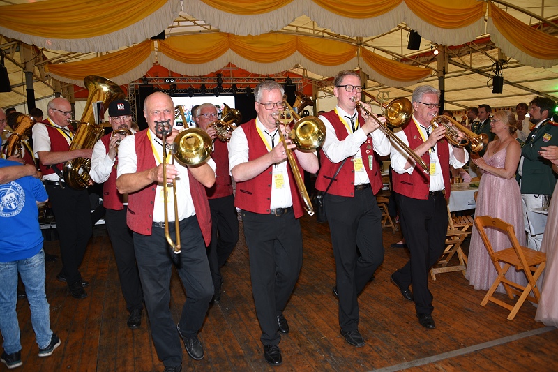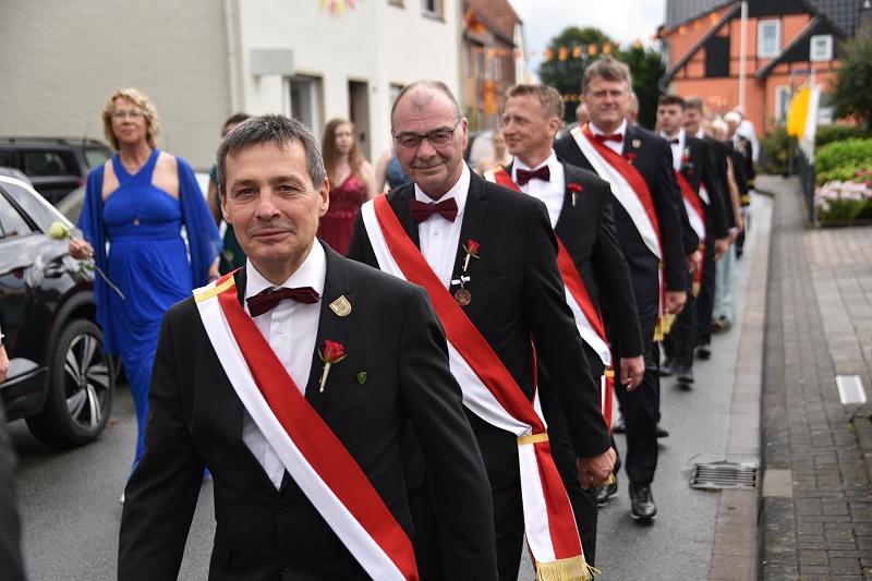 „Ein Schützenfest ist mehr als nur gutes Wetter – es ist unser Gemeinschaftsgefühl und die Freude am Beisammensein. Der Herrgott hat uns glücklicherweise am Ende eine Regenpause beschert“, hieß es von Oberst Franz-Josef Risse im Festzelt. Das Lüchtringen feiern kann, hat das Weserdorf bereits am ersten Tag mit den „Schützenbeats“ am Freitagabend bewiesen. Der Festauftakt mit dem bekannten DJ- und Musikproduzenten-Duo „Stereoact“ und DJ Markus und Markus aus Höxter im Anschluss war gut besucht. „Ausverkauft“ mit mehr als 1000 Besucherinnen und Besuchern hieß es von Alexander Fahrenholz vom Vorstand. Bis tief in die Nacht wurde zu den Elektrobeats im Festzelt gefeiert.