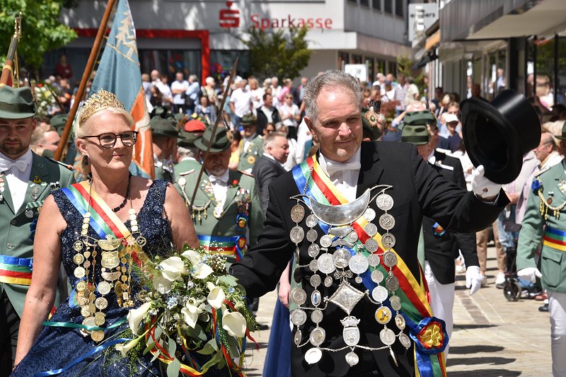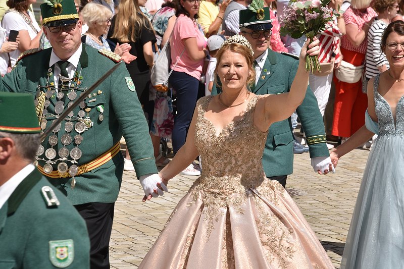 Als der letzte Schütze ins Festzelt einmarschiert war, öffnete Petrus seine Schleusen und es „goss wie aus Eimern.“ Bürgermeister Daniel Hartmann begrüßte beim Zapfenstreich die Bürgerschaft und die angetretenen Schützen, insbesondere aber das Königspaar Dieter und Martina Kuhlebrock nebst Hofstaat. Der Bürgermeister betonte, dass das Schützenfest Teil des kulturellen Erbes von Höxter sei und hob dessen historische Bedeutung, deren Ursprünge bis ins 16. Jahrhundert zurückreichen, hervor. Der Festsonntag hingegen bot überwiegend sonniges Wetter. Dieser Tag war auch der Höhepunkt des dreitägigen Festes, bei dem das Königspaar Dieter und Martina Kuhlebrock im Mittelpunkt stand und ein letztes Mal die große Bühne als Königspaar genießen konnte. Die Königsparade, der Umzug und der traditionelle Vorbeimarsch am Königspaar an der Nikolaikirche fanden wie gewohnt in der Marktstraße statt. Dabei fühlte sich Schützenkönig Dieter Kuhlebrock wieder in den 1970er Jahren angekommen, wie er meinte. Denn: dieses Schützenfest habe wie damals einen wahren Volksfest-Charakter, mit tausenden Menschen, die sich an jeder Ecke in Höxters Innenstadt dicht drängten, um den Festumzug bei strahlendem Sonnenschein sehen zu können.