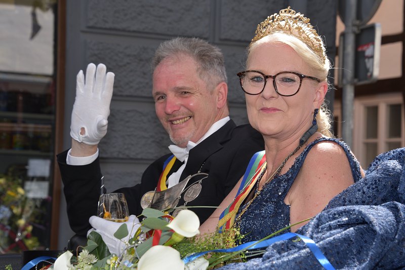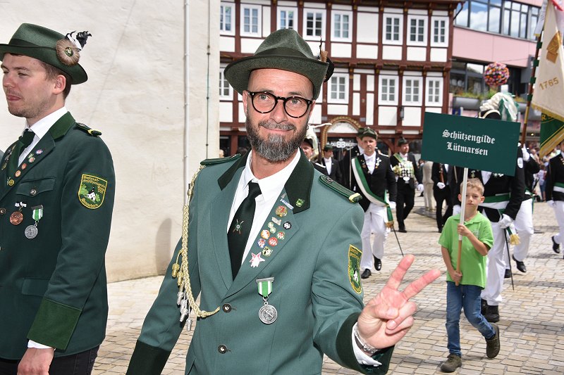 12 Musikkapellen begleiteten den mehrere hundert Meter langen Umzug, in dem tausende Schützinnen und Schützen samt Königspaaren und Hofstaaten aus dem gesamten Stadtgebiet Höxter und dem benachbarten Holzminden sowie die Bundeswehr, die Feuerwehr sowie weitere Vereine teilgenommen haben. Die weiteste Anreise hatten die Schützen aus Lauenstein bei Salzhemmendorf, dessen amtierender Schützenkönig Axel Kochniss ein ehemaliger Höxteraner aus der ersten Kompanie ist. Unter Moderation von Stadtsprecher Markus Finger marschierte der lange Umzug gleich zweimal an der Nikolaikirche vorbei. Ein weiterer Höhepunkt des Festes wird der heutige Montag sein. Dann wird das Geheimnis gelüftet, wer als neue Schützenkönigin von Höxter an der Seite des neuen Schützenkönigs Lars Jubitz von der zweiten Kompanie gewählt wird. Zudem werden die besten Schützen mit der Verleihung der Ehrenscheiben sowie die besten Jungschützen mit dem Jugendpokal geehrt.