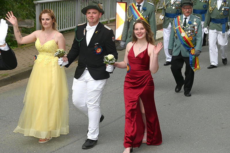 Der Weg führte bergauf und bergab durch das Dorf, begleitet von zwei Spielmannszügen aus Ottbergen und Erkeln. Am Umzug nahmen auch Schützinnen und Schützen aus Ottbergen, Godelheim, Höxter und Ovenhausen sowie deren Königspaare und Hofstaaten teil. Bevor der Zug ins Festzelt einmarschierte, stellten sich das Königs- und Kronprinzenpaar vor der Kirche an der Brokhusenstraße auf, um die Parade abzunehmen. Danach setzte sich der Umzug fort und führte ins Festzelt, wo nach der Partyband Flexx am Samstag, DJ Mac am Sonntag für Stimmung sorgte. Das geschieht am Festmontag: Nach dem Schützenfrühstück am Festmontag wird um 12 Uhr die traditionelle Brunnenprinzproklamation stattfinden. Mit der Partyband „Flexx“ wird das Fest am Montagabend stimmungsvoll ausklingen.