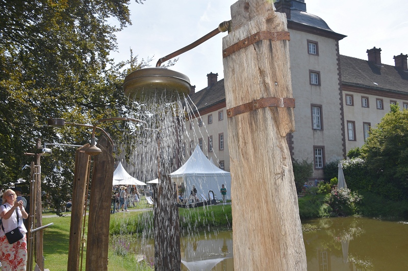 Höxter-Corvey (TKu). Bereits zum 14. Mal verwandelte sich Corvey in ein Mekka für Gartenliebhaber und Kunstfreunde aus ganz Deutschland. Die Veranstaltung im Schlosspark verzeichnete in diesem Jahr noch mehr Besucherinnen und Besucher. Mehr als 15.000 Besucherinnen und Besucher strömten auf das malerische Gelände, um sich von den über 110 Ausstellern und den vielfältigen kulinarischen Angeboten auf fast 30.000 Quadratmetern Fläche begeistern zu lassen. Das Gartenfest zählt mittlerweile zu einem der Höhepunkte im Veranstaltungskalender der Region und es präsentierte sich wie gewohnt in einer idyllischen Atmosphäre. Die weitläufigen Schlossgärten, die von bunten Blumenmeeren und kunstvollen Dekorationen gesäumt waren, luden zum Verweilen und Genießen ein. Das Sortiment der Aussteller war breit gefächert und bot für jeden Geschmack etwas: Von seltenen Pflanzen über kunstvolle Gartenmöbel bis hin zu einzigartigem Kunsthandwerk und modischen Accessoires. Besonders neugierig machten die zahlreichen innovativen und ungewöhnlichen Neuheiten auf sich aufmerksam. Ein neues Highlight waren die einzigartigen Outdoor-Duschen von Marc Müller aus Wedemark. Der Handwerker, der eine besondere Leidenschaft für historisches Eichenfachwerk hegt, fertigt diese Duschen aus alten Balken und Haushaltsgegenständen. Jedes Stück sei ein Unikat und stehe sinnbildlich für Kreativität und ökologisches Engagement, so Müller. So entstehen Duschköpfe aus alten Kupfertöpfen, Gießkannen oder gar Bettpfannen, wodurch er vermeintlichen Abfall in neue, nachhaltige Produkte verwandelt. Die Besucher konnten bei schönstem Sommerwetter den Alltag hinter sich lassen und sich von der Fülle an Inspirationen für den eigenen Garten verzaubern lassen. Die malerischen Gärten des Schlosses, gesäumt von prächtigen Blumenarrangements und kreativen Dekorationen, boten den idealen Rahmen für dieses Fest. Ausspannen in der Familienschaukel oder beim Bad im Outdoor-Whirpool mit Sekt – alles das war außerdem möglich.