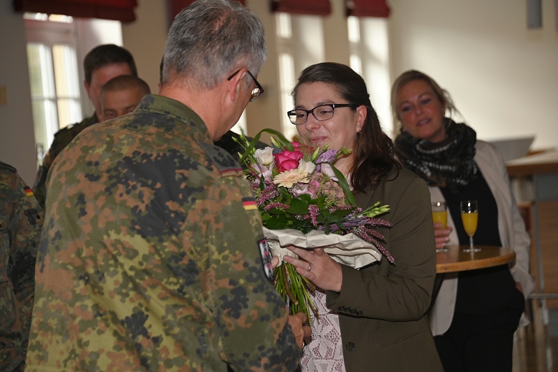 Höxter (TKu). Sturm und Unwetter können die Bundeswehr nicht unterkriegen: Nach dem Unwetter-Szenario, das der feierlichen Zeremonie des Kommandeurswechsel in der General-Weber-Kaserne ein jähes Ende setzte, wurde nun der offizielle Festakt im Festsaal vollzogen, in Regie von Oberst Lutz Nikolaus Neumann, dem stellvertretenden Kommandeur und Chef des Stabes ABC-Abwehrkommandos der Bundeswehr. Er entband Oberstleutnant Michael Gorzolka von seinem Amt als Kommandeur und ernannte Oberstleutnant Michael Mosig zu seinem Nachfolger. Die Verantwortung eines Kommandeurs sei besonders hoch und eine prägende Zeit für einen jeden Kommandeur, sagte Oberst Neumann. In seiner Laudatio lobte Neumann den scheidenden Kommandeur Michael Gorzolka stets als einen fordernden aber auch ein fördernden Vorgesetzten. Gorzolka habe unter Zeitdruck einen schnellen einsatzfähigen Verband geformt und das auch noch in schwierigen Zeiten der Corona-Pandemie und dem Russischen Angriffskrieg, ergänzte Lutz Neumann.