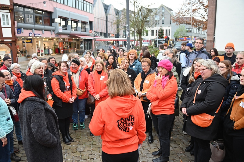 Ein technischer Zwischenfall – der Ausfall der Lautsprecheranlage – unterstrich die symbolische Bedeutung des Events. Die Rednerinnen setzten jedoch ihre „starken Stimmen“ ein, um besser gehört zu werden, und wurden dabei vom Publikum unterstützt. Den Abschluss der Veranstaltung bildete eine eindrucksvolle Geste: Rund 150 Teilnehmende erhoben ihre Hände, auf denen „Nein zu Gewalt an Frauen und Kindern“ gestempelt war, und riefen die Botschaft dreimal lautstark in die Welt. Abends erstrahlten in Höxter markante Gebäude wie die Dechanei, die Nikolaikirche und das Historische Rathaus in leuchtendem Orange – ein leuchtendes Zeichen der Solidarität mit den Opfern von Gewalt. Der Zonta-Club und der Arbeitskreis „Gegen Gewalt an Frauen und Kindern im Kreis Höxter“ hoffen, dass sich wie in den Vorjahren viele Institutionen und Unternehmen an der Illumination beteiligen.