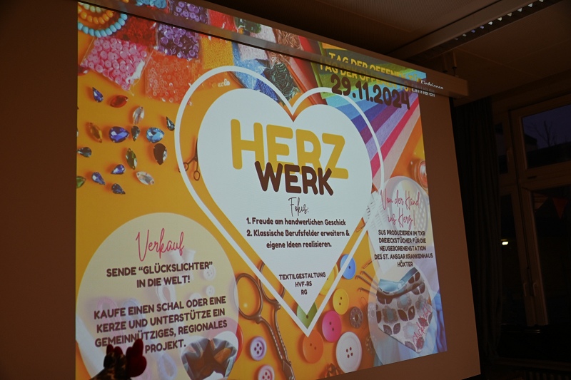 Ein weiterer Höhepunkt des Tages war die Vorführung der Jugendfeuerwehr Höxter. Mit einer spektakulären Übung zeigten die jungen Einsatzkräfte, wie ein Löschangriff professionell durchgeführt wird. Meterhohe Flammen wurden von drei D-Rohren schnell unter Kontrolle gebracht – ein Schauspiel und eine Demonstration des Erlernten, das zugleich auf die wichtige Arbeit der Feuerwehr aufmerksam machte, womit die Jugendlichen gleichzeitig auch für neue Mitglieder warben. Doch der Hoffmanns-Markt war nicht nur ein Fest der Gemeinschaft, sondern auch des sozialen Engagements. Die Erlöse des Tages kommen dem Projekt „Herz Werk“ zugute, das die Neugeborenenstation im St. Ansgar Krankenhaus Höxter unterstützt. Mit den Spendengeldern sollen Babydreieckstücher für die kleinsten Patienten angeschafft werden. Zudem soll ein weiterer wohltätiger Zweck in der Region gefördert werden, wie Schulleiterin Sylvia Stebbing erklärte.