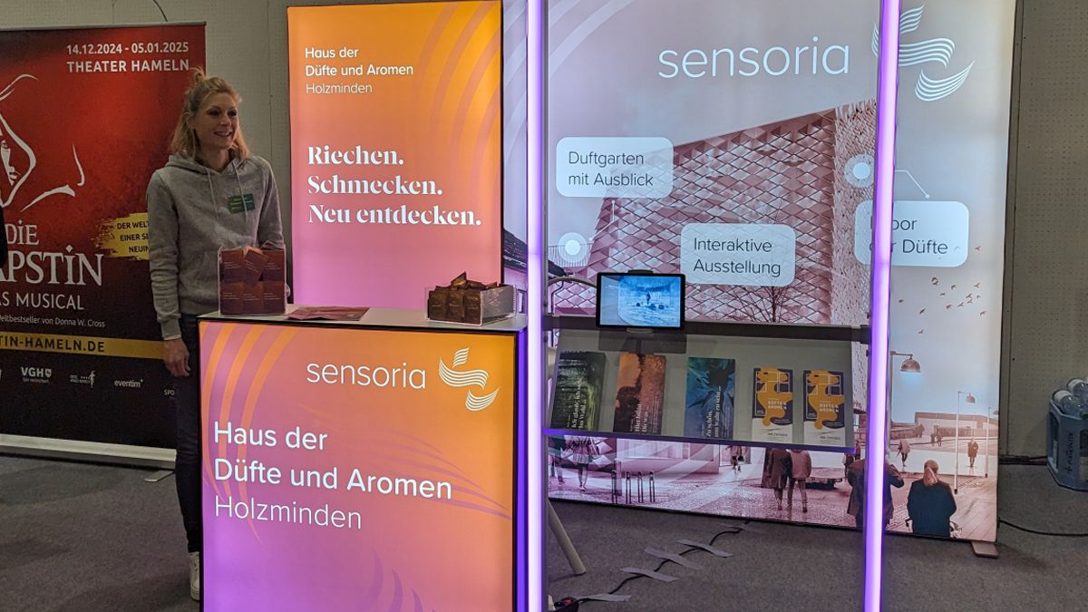 Zusammen mit regionalen Partnern wie Weserbergland Tourismus und Flotte Weser zeigt Sensoria die Vielfalt und Attraktivität der Region. Der Stand bietet nicht nur spannende Einblicke in das Ausstellungshaus der Düfte und Aromen, sondern auch kreative Inspirationen für außergewöhnliche Ausflüge und Erlebnisse im Weserbergland.