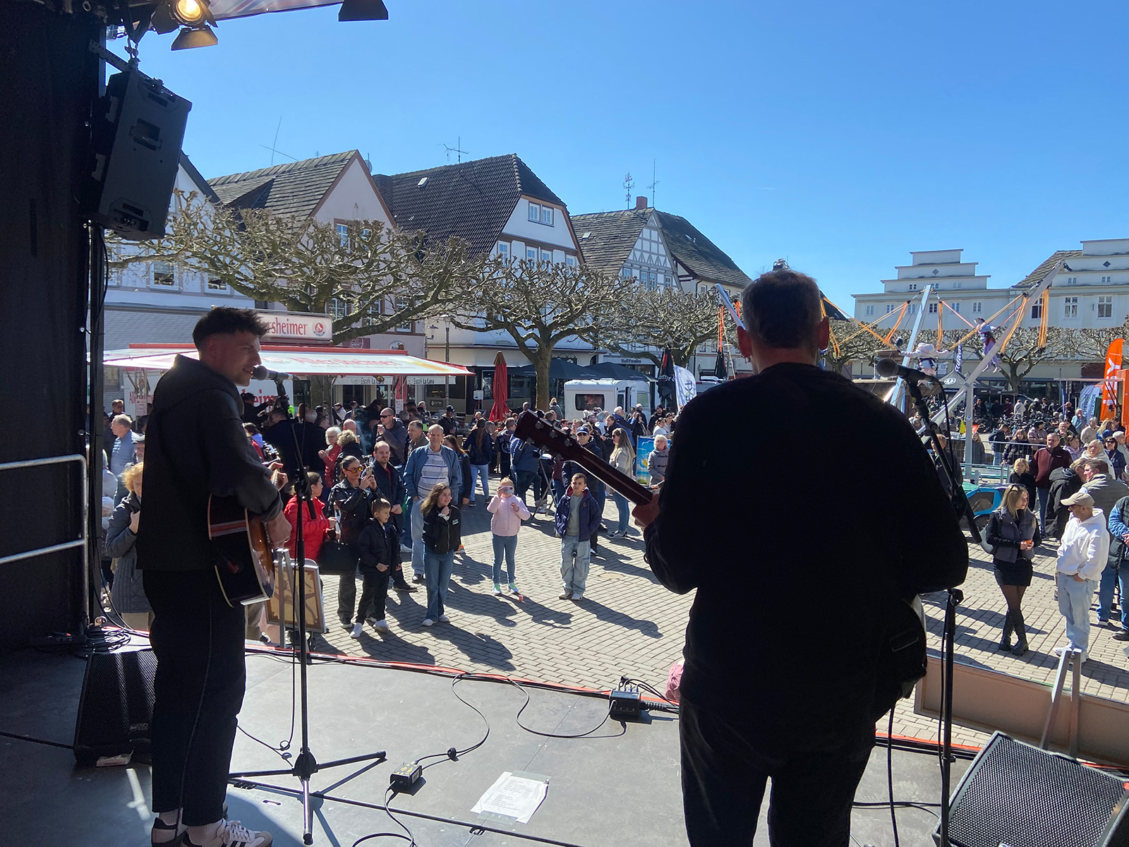 Um 12 Uhr trat Bürgermeister Christian Belke auf die Bühne und nutzte die Gelegenheit, dem Team des Stadtmarketings rund um Isabell Adam, Inga Schaper und Volkmar Stanoschek sowie den Stadtwerken einen großen Dank auszusprechen. Seit November des vergangenen Jahres hatte das Team die Veranstaltung organisiert. „Das Kükenfest 2025 kann nun beginnen“, eröffnete Belke das Programm. Durch das Programm führte Joshua Tappe, DSDS-Finalist aus dem Jahr 2020, der bereits bei früheren Veranstaltungen Moderationserfahrung sammeln konnte.