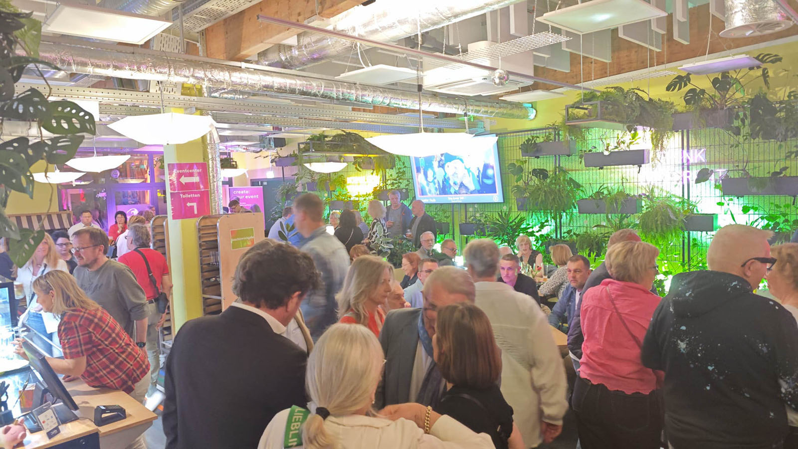Für ruhigere Momente bot ein liebevoll gestalteter Raum, der dem „Strandkorb“ nachempfunden ist. Leise Musik, bequeme Sitzecken und ein echter Strandkorb direkt vor dem Eingang sorgten für die typische Atmosphäre von damals. An der Bar gab es Klassiker wie Bier und Sekt, aber auch sommerliche Cocktails wie Pina Colada, Mojito oder „Sex on the Beach“. Treffpunkt für viele: das create:bistro, an der alte Bekannte sich bei einem Drink wiederfanden und in Erinnerungen schwelgten. Auf digitalen Bildschirmen liefen Fotos aus den alten Zeiten – Momente aus der Pub-Historie, die manch einem ein nostalgisches Lächeln ins Gesicht zauberten.