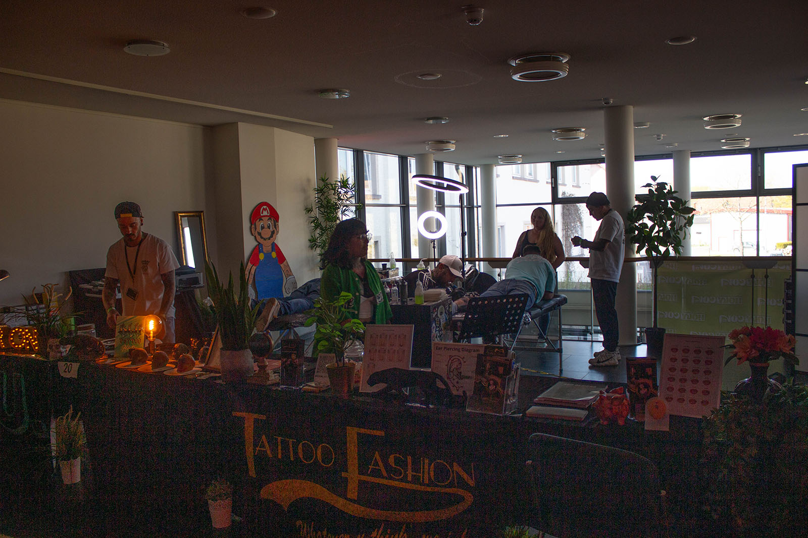 Im Mittelpunkt der Convention stand die Tattoo-Kunst. Verschiedene Studios aus ganz Deutschland präsentierten ihre Arbeiten – von floralen Motiven über Porträts und Tierdarstellungen bis hin zu abstrakten Designs. Wer wollte, konnte sich direkt vor Ort tätowieren lassen. Besonders Mutige wagten sich an das sogenannte „Glory Hole“: Für 50 Euro gab es ein Überraschungstattoo. Die möglichen Motive waren zwar ausgehängt, welches Motiv letztlich gestochen wurde, entschied jedoch der jeweilige Tattoo-Artist.