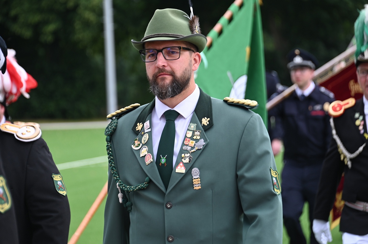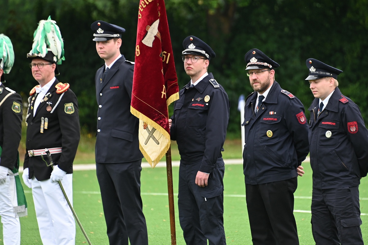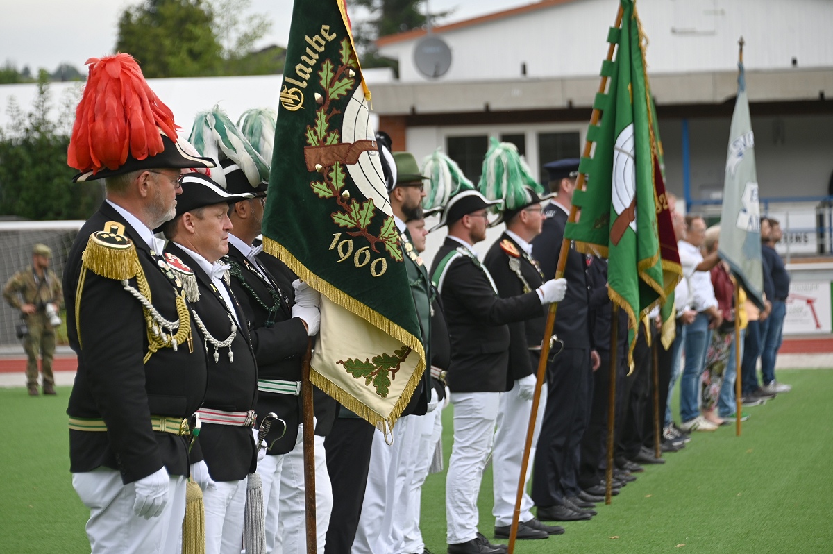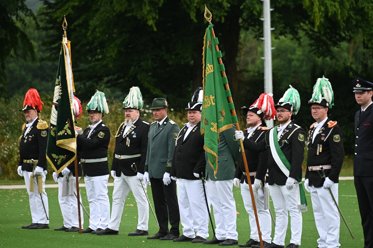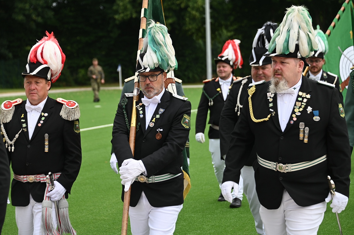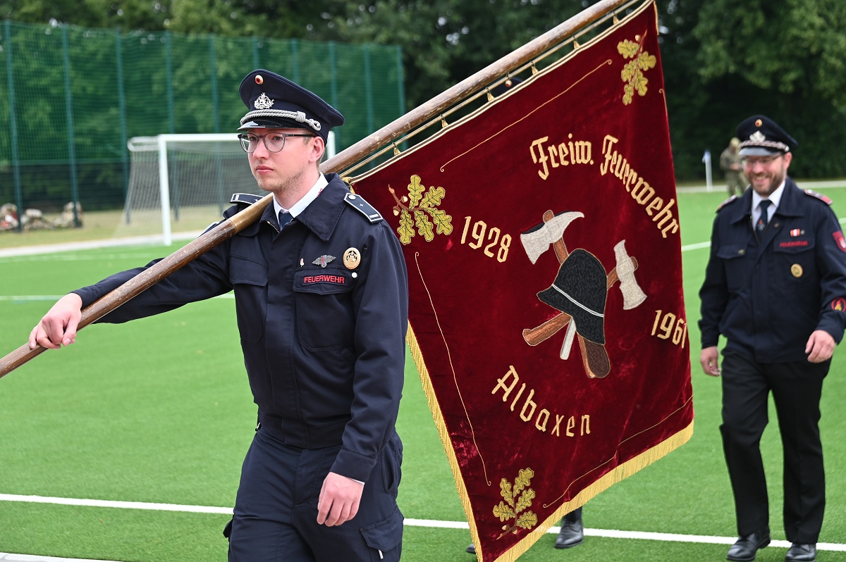 Der offizielle Höhepunkt des Festes war der feierliche Appell am späten Nachmittag. Die dritte Kompanie trat vollzählig an, flankiert von Abordnungen aller Albaxer Vereine, dem Tambourkorps Viktoria sowie dem Blasorchester Concordia. Die musikalische Begleitung verlieh dem Zeremoniell einen festlichen und würdigen Rahmen.