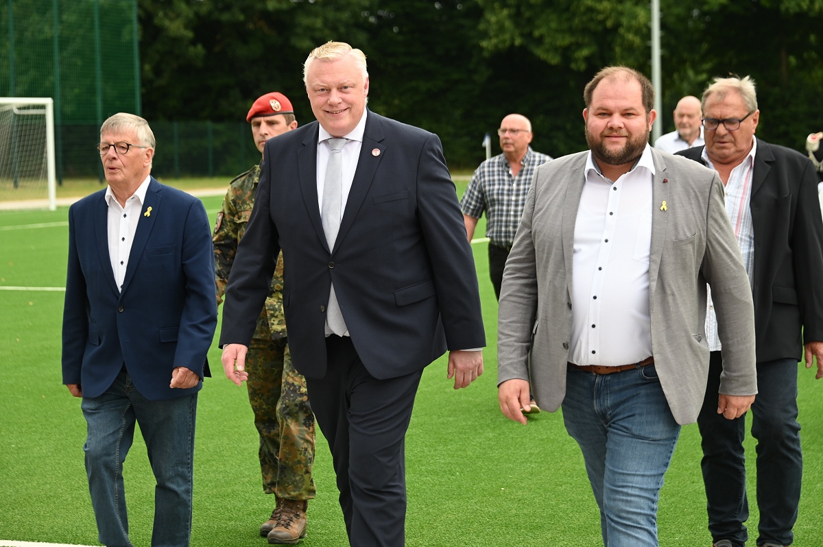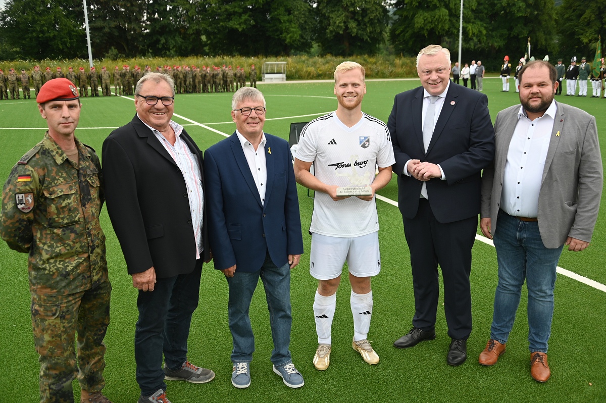 Ein sportlicher Höhepunkt folgte am Nachmittag: Ein Freundschaftsspiel zwischen dem SV Albaxen und einer Auswahlmannschaft der Bundeswehr lockte zahlreiche Zuschauer an den Spielfeldrand. Das Ergebnis – ein klarer 9:2-Sieg für den SV Albaxen – geriet angesichts der sportlichen Fairness und der heiteren Stimmung zur Nebensache. Im Vordergrund standen Teamgeist, Freude am Spiel und das Miteinander. Den Siegerpokal nahm stellvertretend für die siegreiche Mannschaft Stefan Rode entgegen.