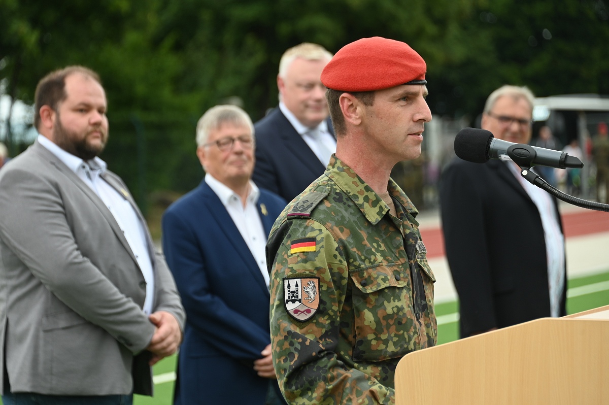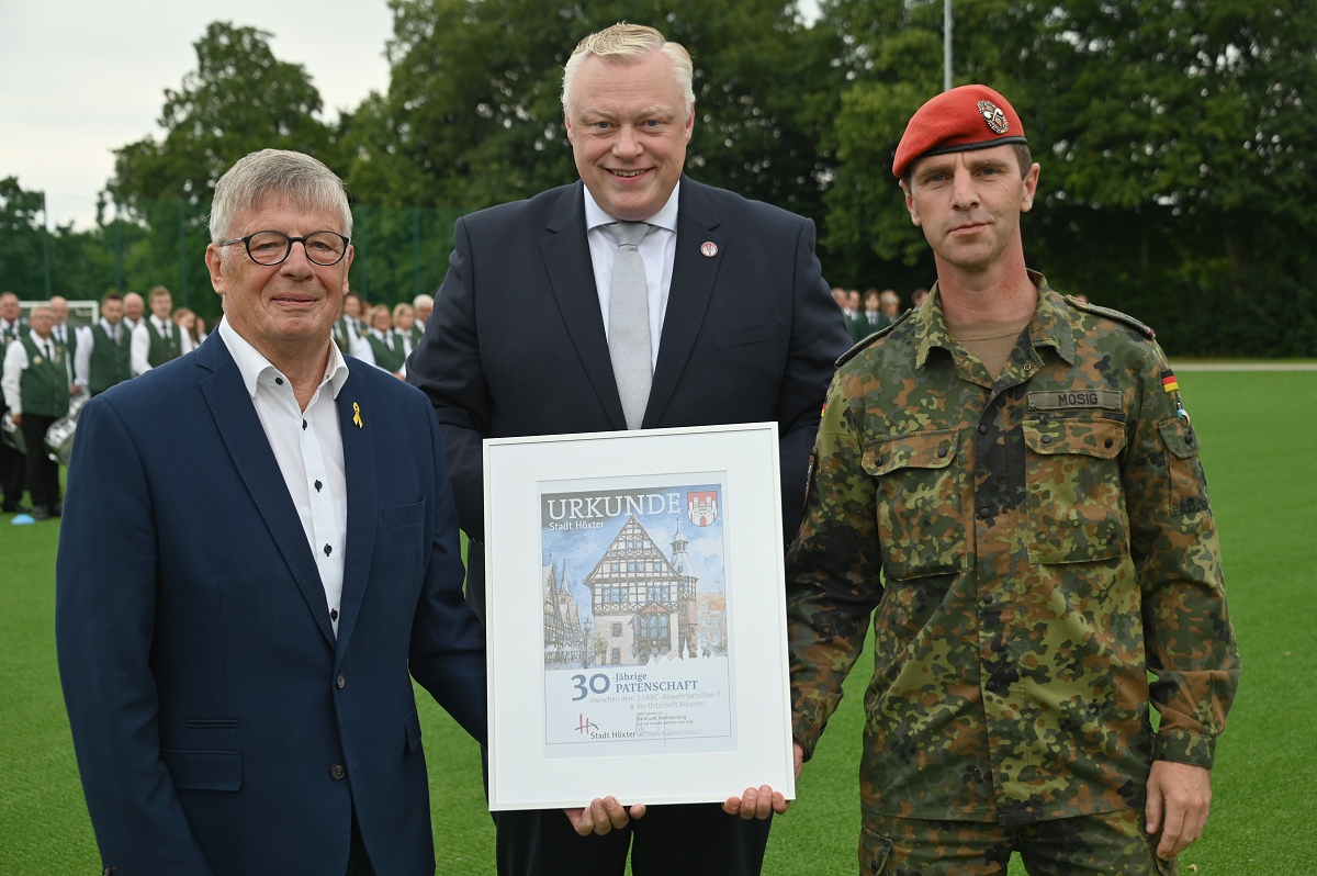 Auch Kommandeur Michael Mosig unterstrich in seiner Rede den Wert der langjährigen Kooperation: „Diese Patenschaft ist mehr als eine symbolische Geste. Sie wird mit Leben erfüllt – durch gemeinsame Veranstaltungen, regelmäßige Begegnungen und ein echtes Miteinander.“ Besonders hob er hervor, wie sehr sich die Soldatinnen und Soldaten in Albaxen willkommen fühlen: „Nicht als Gäste, sondern als Teil der Dorfgemeinschaft.“