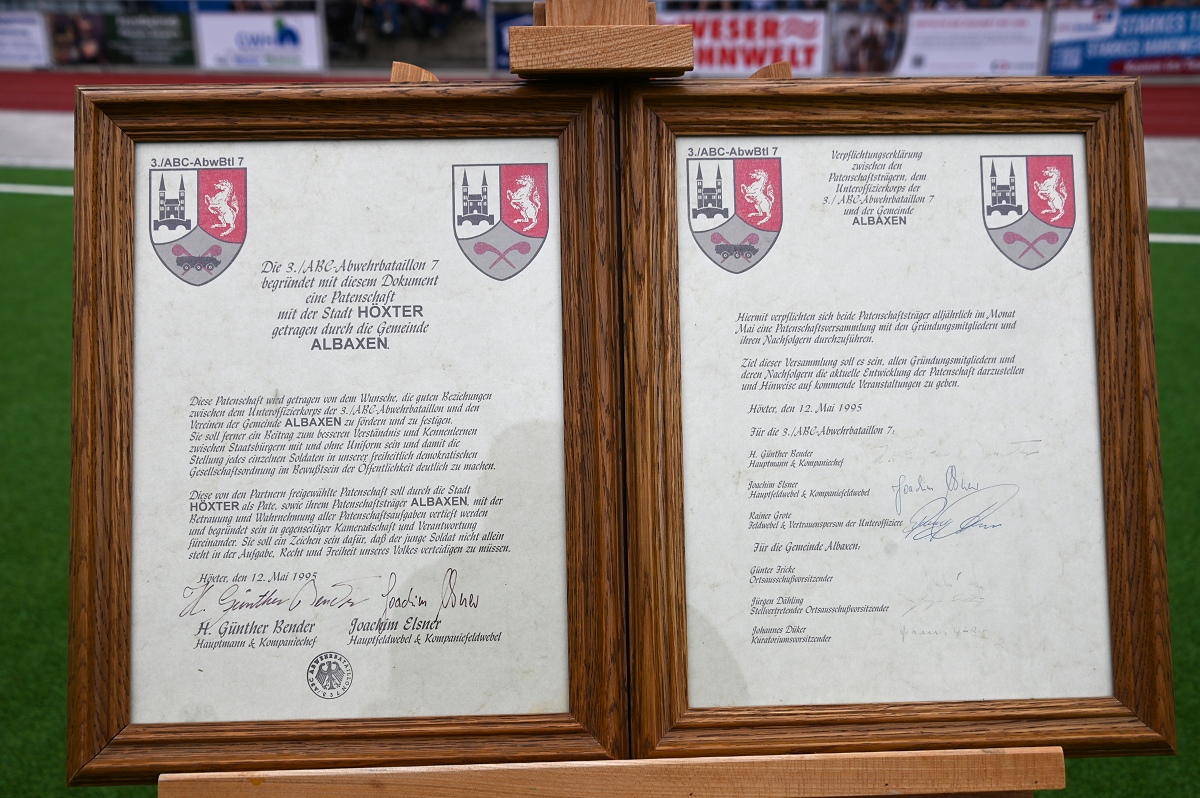 Albaxen (TKu). Drei Jahrzehnte Freundschaft, Vertrauen und gegenseitige Unterstützung: Das Dorf Albaxen feierte am vergangenen Samstag ein besonderes Jubiläum. Seit genau 30 Jahren besteht die Patenschaft zwischen dem Ort und der dritten Kompanie des ABC-Abwehrbataillons 7, das kürzlich in ein Regiment umgewandelt wurde. Diese außergewöhnliche Verbindung zwischen Zivilgesellschaft und Bundeswehr wurde mit einem großen Festtag begangen, der zeigte, wie lebendig und tief verwurzelt diese Beziehung ist.
