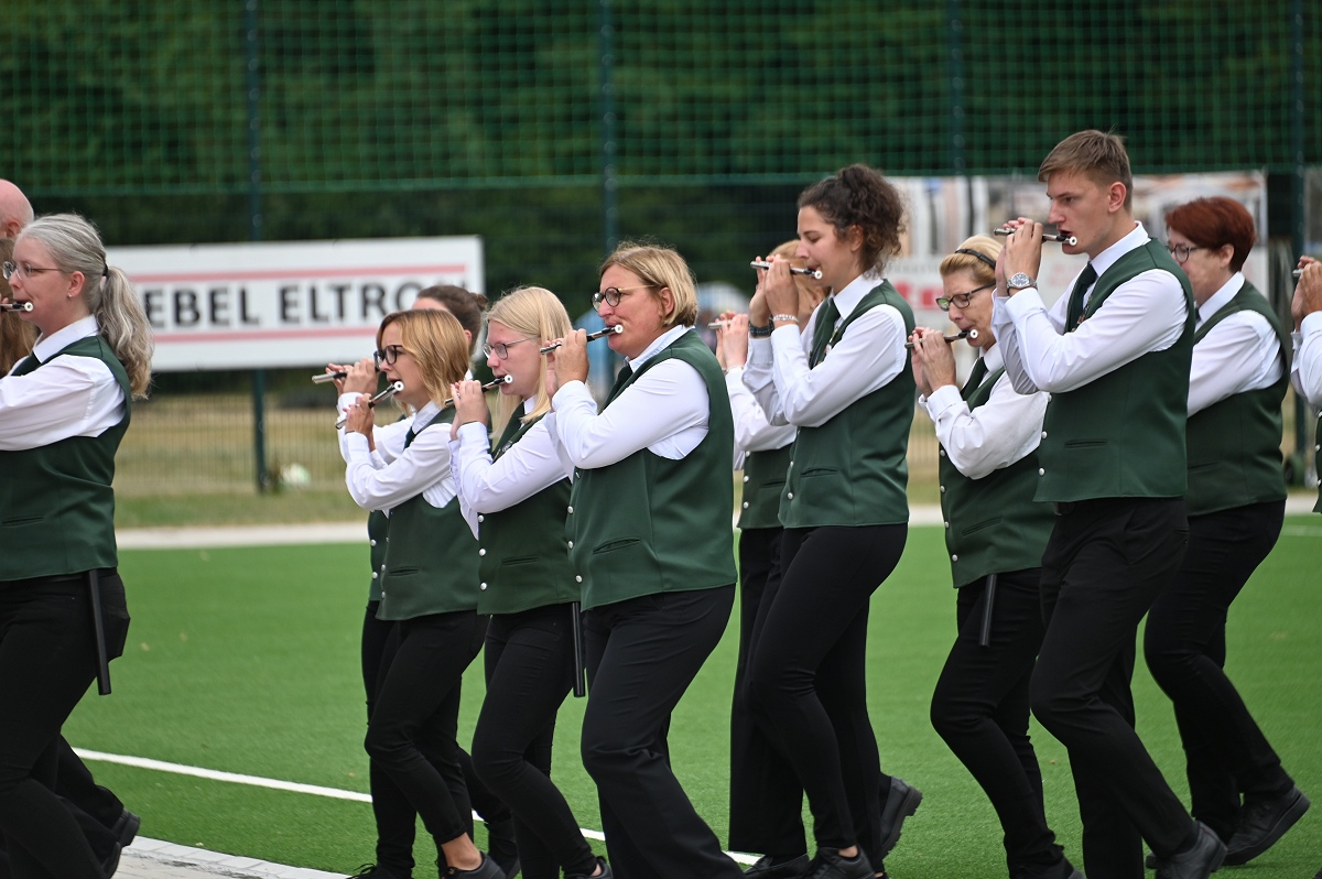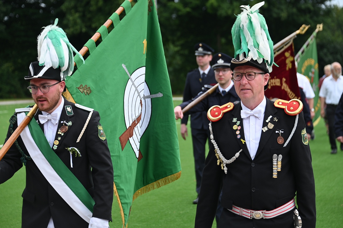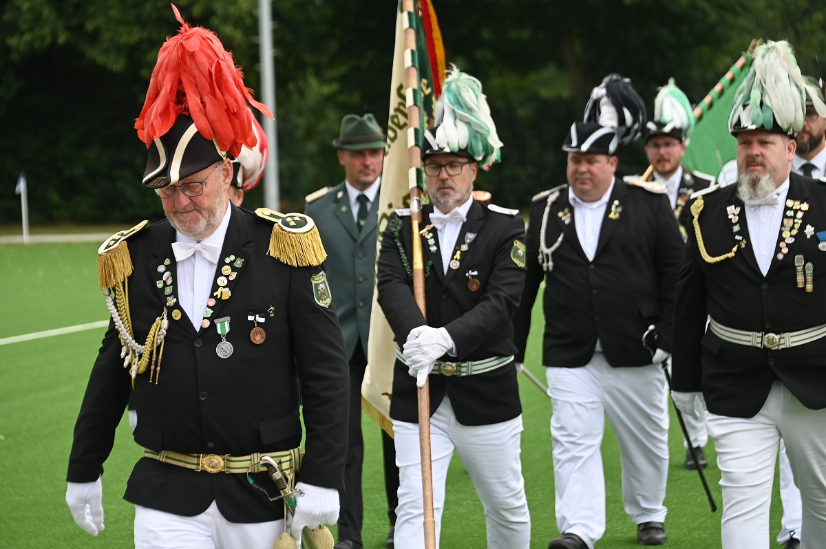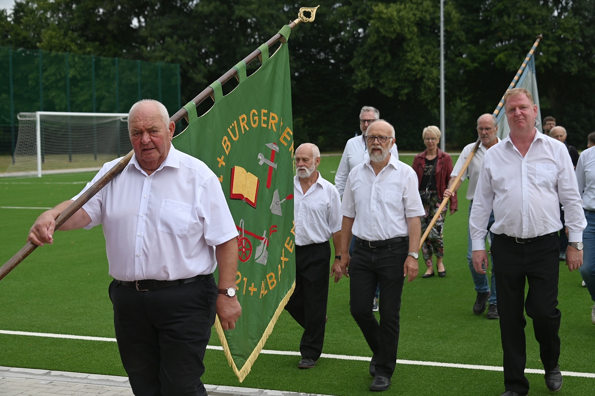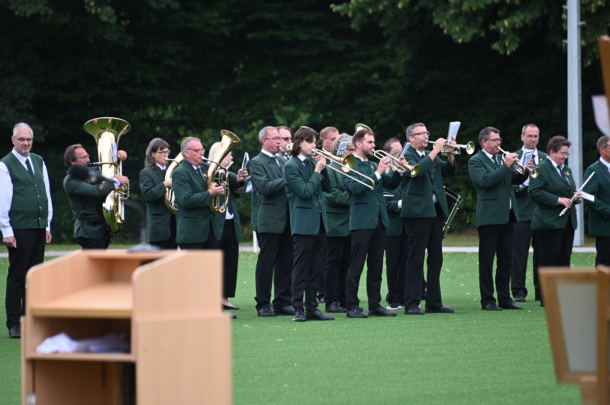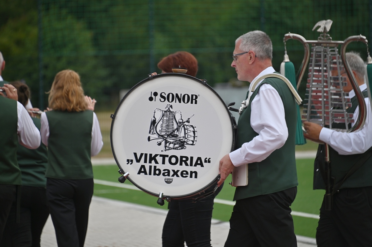 Den musikalischen Abschluss bildeten der Kurfürstenmarsch und die Nationalhymne – gespielt vom Blasorchester Concordia Albaxen – ehe der feierliche Teil mit einem gemeinsamen Marsch zum Schützenhaus endete. Dort setzte sich die Veranstaltung in geselliger Atmosphäre fort. Kulinarisch wurden die Gäste mit Bratwurst, Steak, Erbsensuppe und kühlen Getränken versorgt. Ab 17 Uhr begann der öffentliche Teil der Feier mit Musik, vielen Gesprächen und ausgelassener Stimmung, die bis in die Abendstunden anhielt.