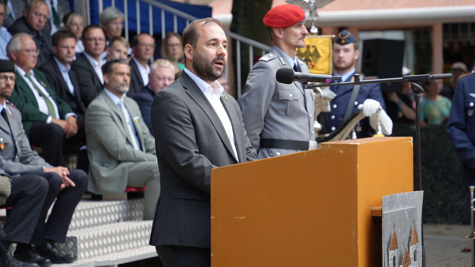 Seit zehn Jahren hatte ein öffentliches Gelöbnis nicht mehr in Holzminden stattgefunden. Doch angesichts der zunehmend angespannten sicherheitspolitischen Lage gewinnt die Bundeswehr wieder an Bedeutung – das machten mehrere Redner während der Veranstaltung deutlich, darunter der Bundestagsabgeordnete Johannes Schraps: „Wir spüren alle die Zerbrechlichkeit unserer demokratisch-freiheitlichen Grundordnung. Daher braucht es Menschen wie Sie, die mit ganzem Herzen Verantwortung übernehmen“, so Schraps, mit direktem Bezug auf die zugespitzte Lage in der Ukraine.
