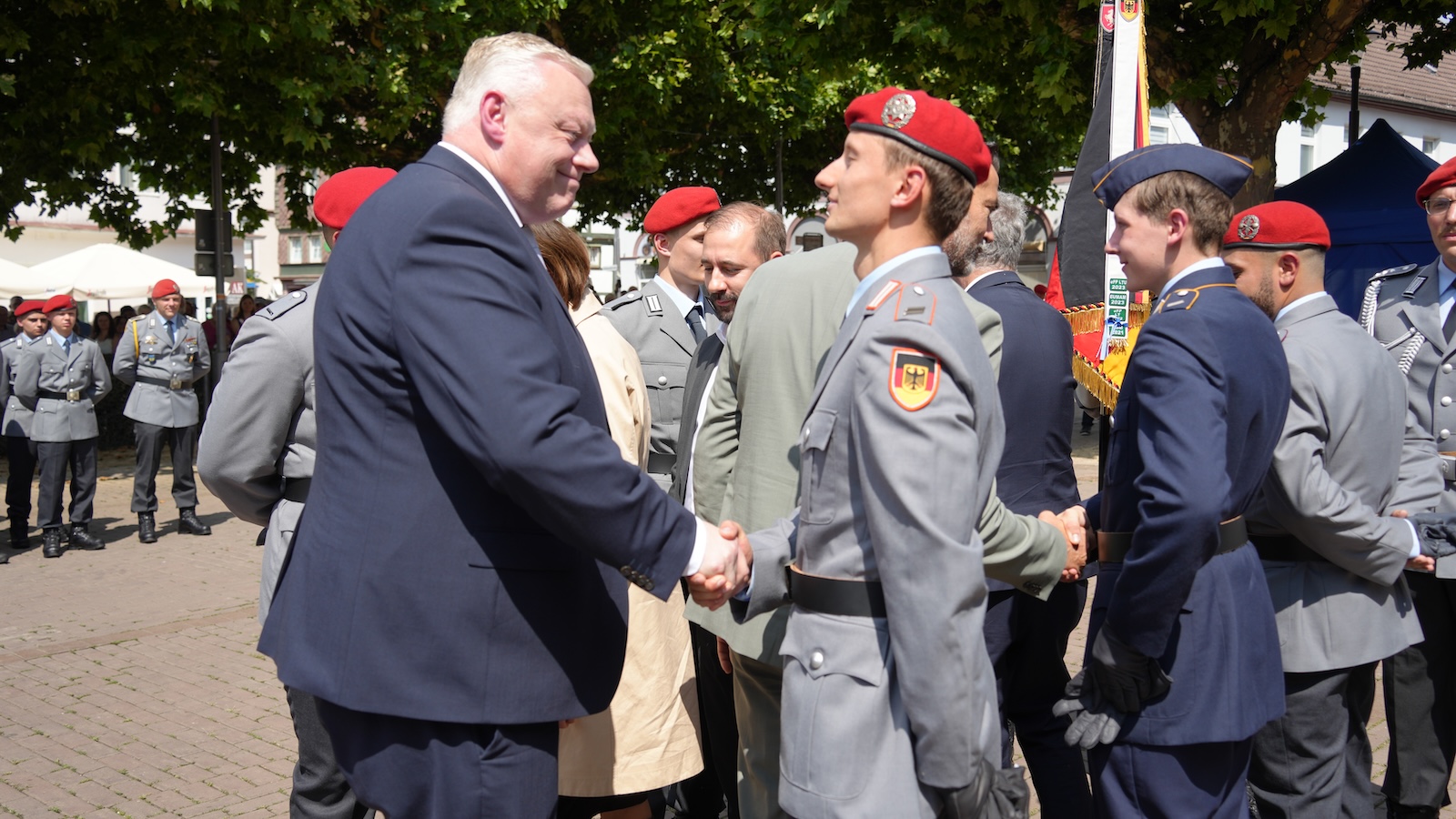 Auch die Politik war bei diesem besonderen Anlass vertreten: Neben Johannes Schraps waren unter anderem die Bundestagsabgeordnete Mareike Lotte Wulf, die Landtagsabgeordneten Uwe Schünemann und Sabine Tippelt, Landrat Michael Schünemann, der stellvertretende Landrat Werner Dürdoth sowie die Bürgermeister Christian Belke (Holzminden) und Daniel Hartmann (Höxter) anwesend. Sie alle ließen es sich nicht nehmen, den Soldaten persönlich zu gratulieren.