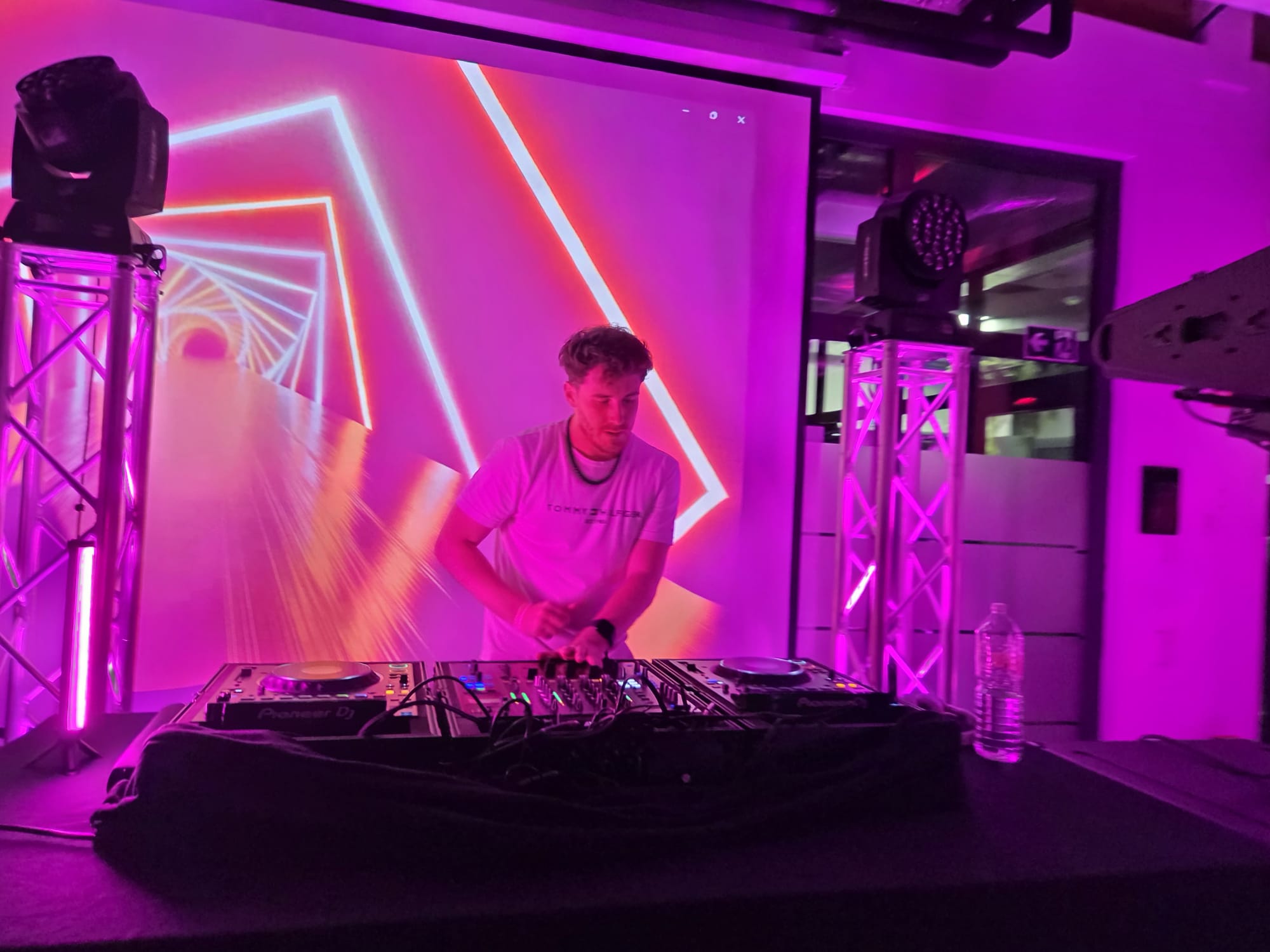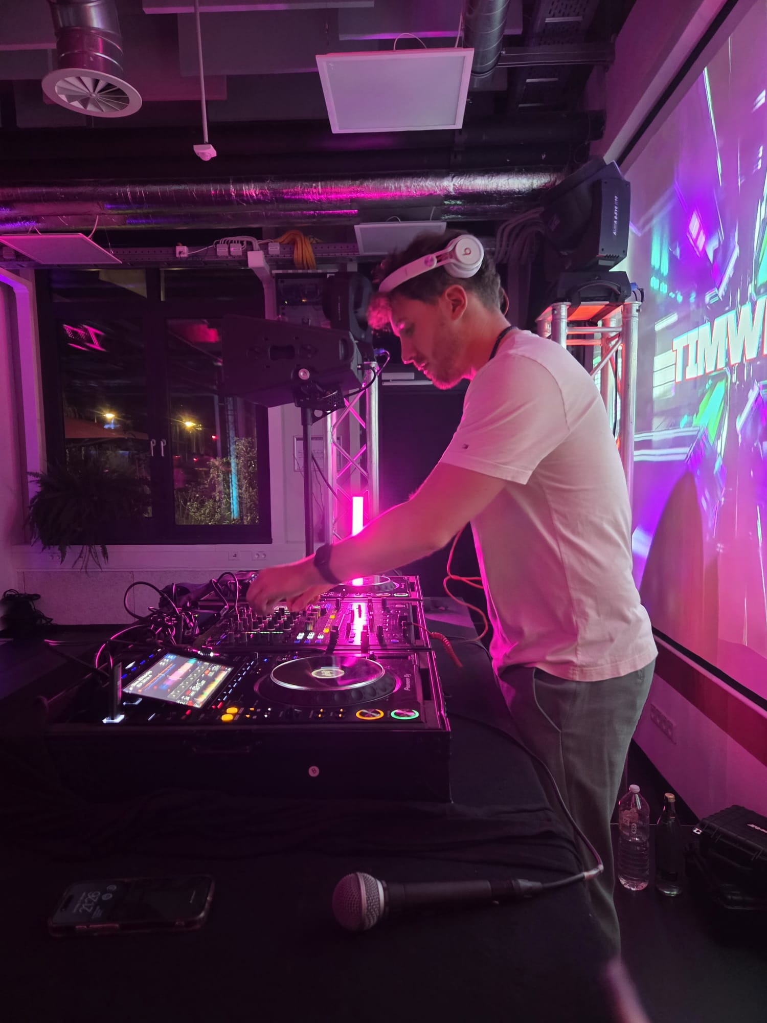 Dank der unterschiedlichen Räumlichkeiten des create:hub, die sich in Stil, Farbe und Thema unterscheiden, konnte auch in jedem Bereich eine eigene musikalische Atmosphäre entstehen. Auch Timweyy stimmte dem zu. Denn sofort fiel ihm auf, wie großartig die Location sei und dass diese an Hausparty-Vibes erinnere. Jannik Schrick als Lichtdesigner sorgte dafür, dass die Location mit passenden Lichteffekten noch eindrucksvoller wirkte.