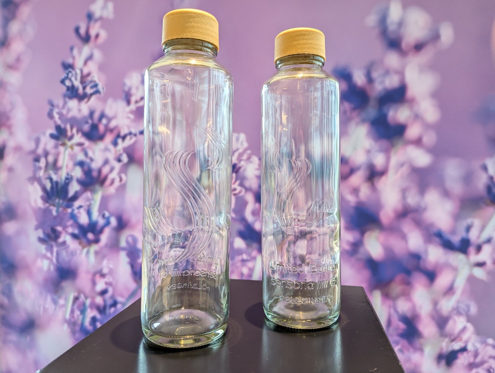 Mit der Glasflasche wird das Thema „Geschmack erleben“ greifbar: Sie vereint hochwertiges Design und Funktionalität und trägt zugleich Sensoria in die Welt hinaus. Gemeinsam entwickelten OI Holzminden und Sensoria eine Trinkflasche, die durch klare Linien, das eingeprägte Sensoria-Logo auf der Vorderseite und den Schriftzug „Limited Edition Sensoria ///// OI Holzminden“ auf der Rückseite überzeugt.