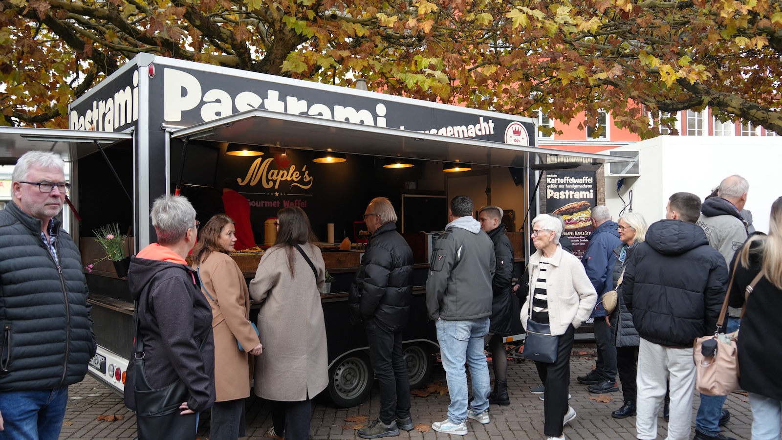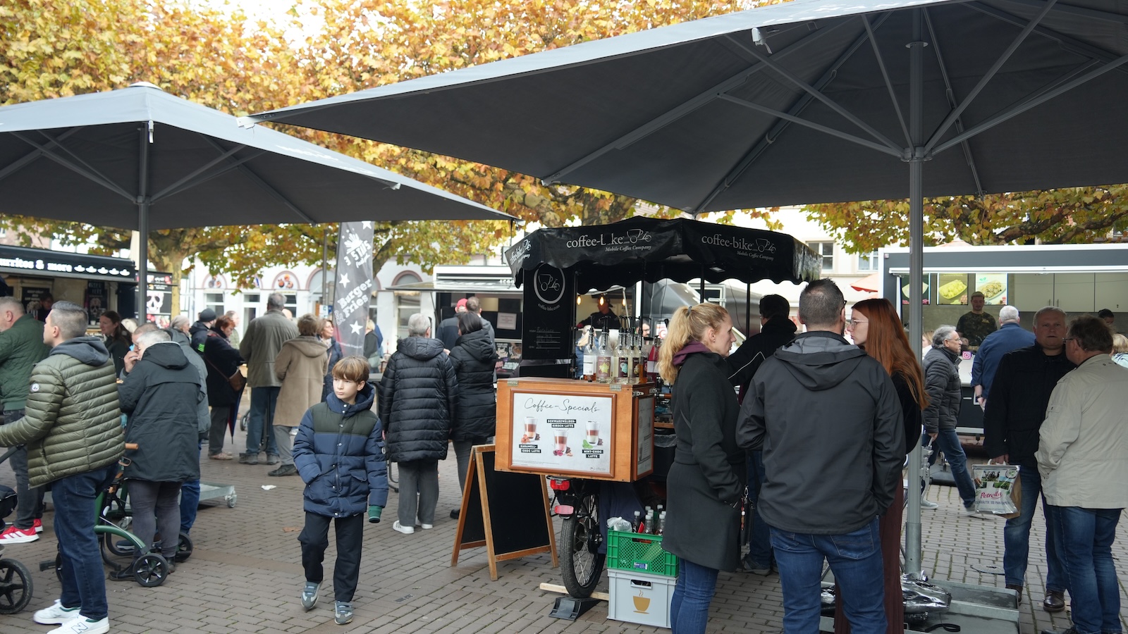 Das Street Food Festival verwandelte den Marktplatz in ein duftendes Paradies. Rund 15 Foodtrucks boten Spezialitäten aus aller Welt – von Burritos, Schaschlik und Burgern bis hin zu Churros, Crêpes und Loukoumades. Auch das Coffee-Bike sorgte mit Espresso und Cappuccino für Genussmomente. An fast jeden Truck standen die Besucher schlange und probierten sich durch das kulinarische Angebot.