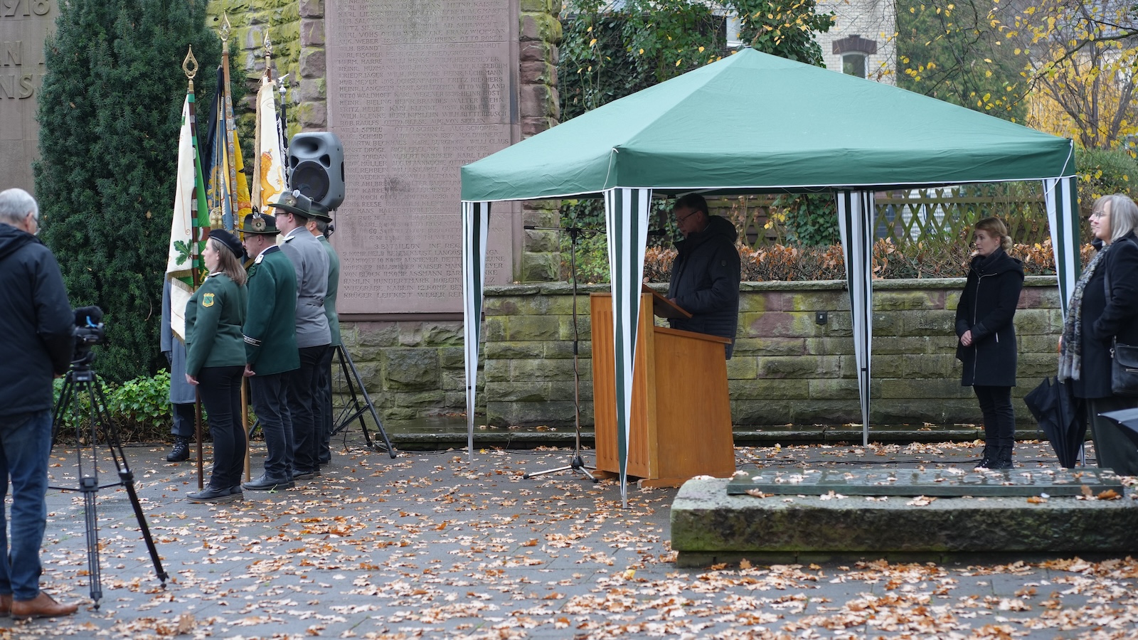 Superintendentin Christiane Nadjé-Wirth schloss sich mit einem Gebet an, bevor die Kränze am Ehrenmal niedergelegt wurden. Mit der Nationalhymne endete die Veranstaltung, woraufhin die Abordnungen der Schützen abrückten und sich die Teilnehmenden langsam zerstreuten.