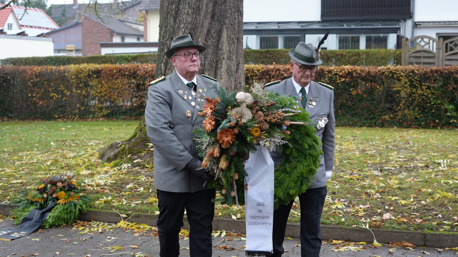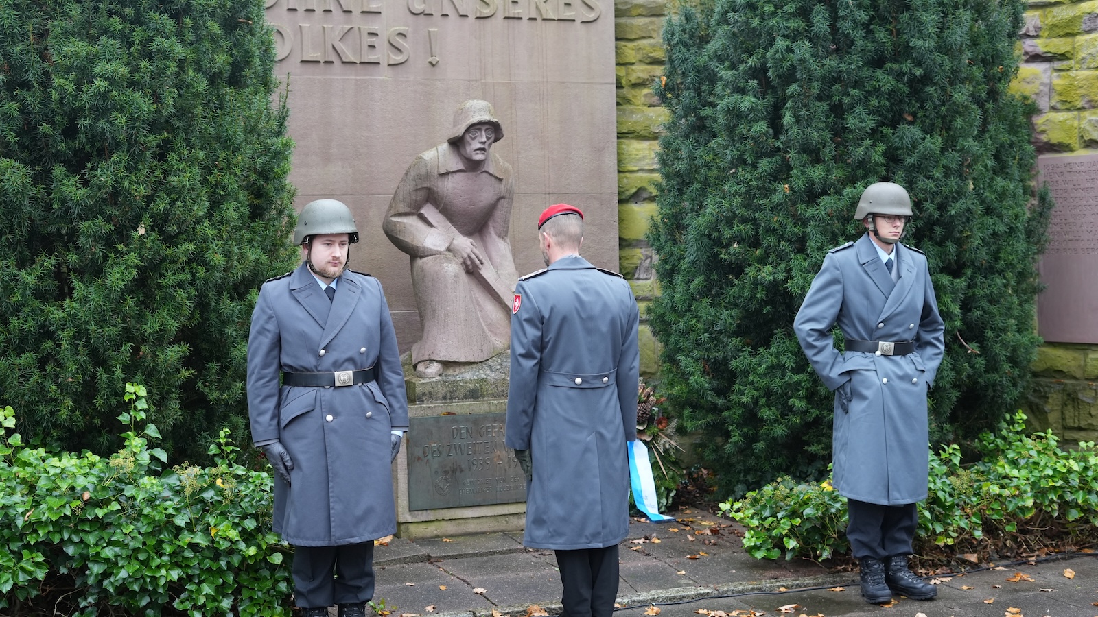 Holzminden (red). Am Sonntag fand in Holzminden die zentrale Gedenkveranstaltung zum Volkstrauertag am Ehrenmal an der Fürstenberger Straße statt. Vertreterinnen und Vertreter der Stadt sowie Abordnungen der Arbeitsgemeinschaft der Holzmindener Schützen, des Panzerpionierbataillons 1 der Pionierkaserne, der Reservistenkameradschaft Holzminden sowie Bürgerinnen und Bürger nahmen daran teil und legten Kränze nieder.