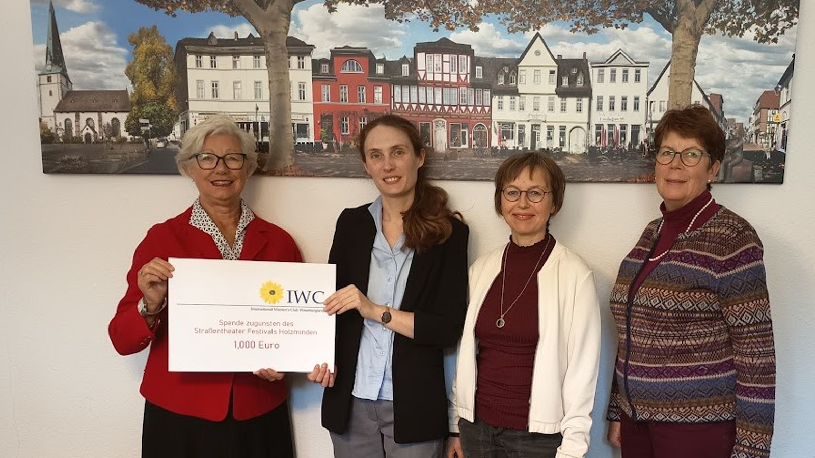 Holzminden (red). Der IWC International Women’s Club Weserbergland e.V. hat dem Straßentheater-Festival in Holzminden 1.000 Euro gespendet. Die Summe stammt aus Mitgliedsbeiträgen sowie zusätzlichen Spenden von Clubmitgliedern und soll dazu beitragen, das internationale Festival langfristig zu sichern. In einer Stadt mit international tätigen Unternehmen und zahlreichen Mitarbeiterinnen und Mitarbeitern aus vielen Ländern sei ein kulturelles Ereignis mit globalem Flair unverzichtbar.