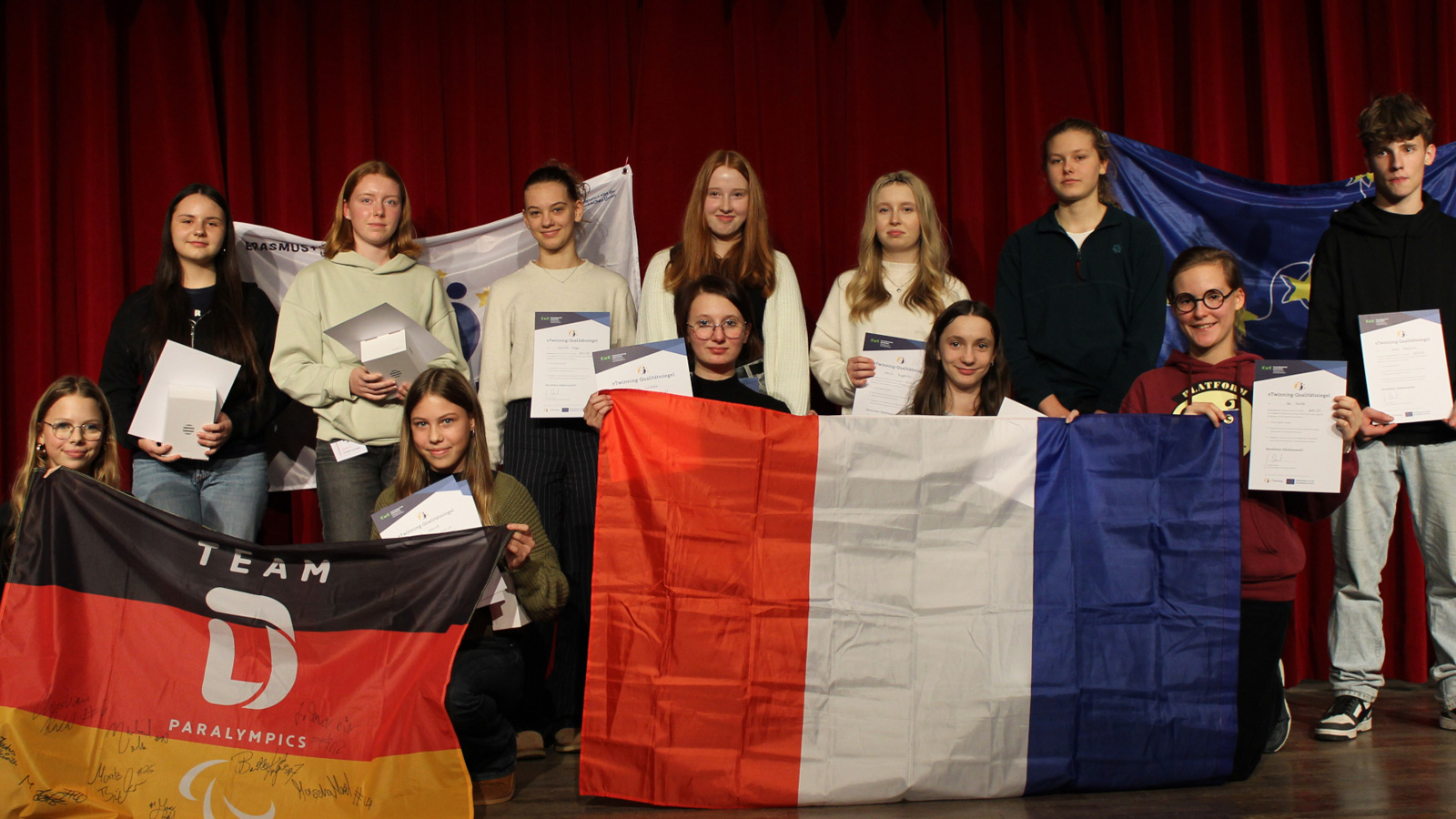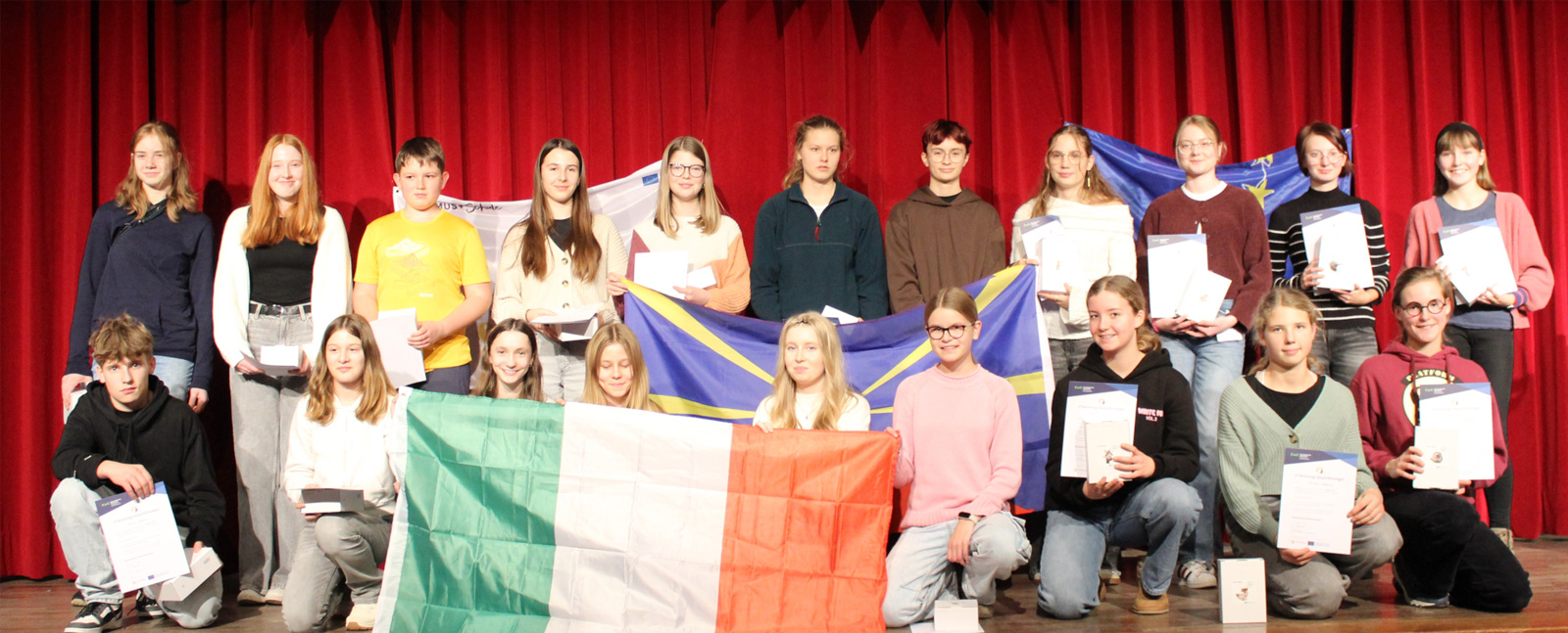 Für ihre erfolgreiche Mitarbeit in den eTwinning-Projekten erhielten die beteiligten Schülerinnen und Schüler Urkunden sowie Sachpreise. Zudem nahmen im Schuljahr 2024/25 siebzehn Schülerinnen und Schüler der Spanischkurse des neunten Jahrgangs am englisch-spanischen Projekt „A Travel through Time“ mit einer Partnerschule in Spanien teil. Der Austausch war mit gegenseitigen Besuchen verbunden. Für ihre Teilnahme erhielten die Jugendlichen den „Europass Mobilität“.