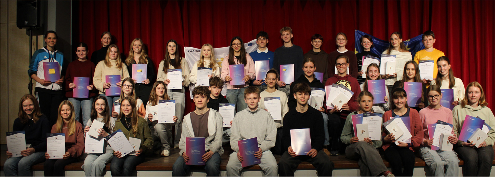 Auch im aktuellen Schuljahr setzt die Erasmus-AG ihre Arbeit fort. Im Projekt „W.E.L.L.-Being“ entwickeln Schülerinnen und Schüler gemeinsam mit einer griechischen Partnerschule Ideen zur Förderung von Gesundheit, mentaler Stärke und Resilienz. Acht Schülerinnen nahmen bereits im Oktober an einer Mobilität nach Griechenland teil und wurden dafür ebenfalls mit dem Europass ausgezeichnet.