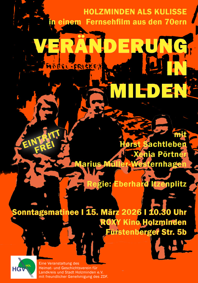 Holzminden (red). Mehr als 50 Jahre nach seiner Erstausstrahlung holt der Heimat- und Geschichtsverein Holzminden den ZDF-Fernsehfilm „Veränderung in Milden“ zurück auf die große Leinwand. Am 15. März 2026 wird der Film im Rahmen einer Matinee-Veranstaltung mit freundlicher Genehmigung des ZDF und bei freiem Eintritt im Holzmindener Roxy-Kino gezeigt.