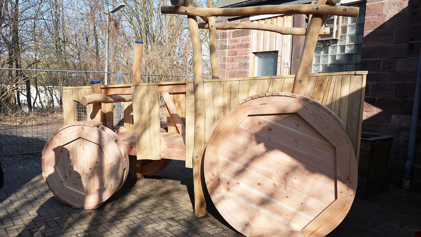 Das Spielgerät ist noch nicht vollständig fertiggestellt, die Arbeiten befinden sich jedoch bereits auf der Zielgeraden. Sobald die letzten Handgriffe erledigt sind, soll auch ein passender Name für den Trecker gefunden werden. Bereits jetzt beeindruckt das Projekt mit seinen Dimensionen: Der Traktor misst rund vier Meter in der Länge, etwa dreieinhalb Meter in der Höhe und ist mit seinen Rädern rund zweieinhalb Meter breit.