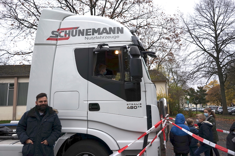 Die Tabler zeigten den Kindern mithilfe von Absperrband, wo sie von den Lkw-Fahrern gesehen werden können und wo sich der tote Winkel befindet. Jedes Kind durfte auf dem Fahrersitz Platznehmen und selbst sehen, wie eine ganze Klasse im toten Winkel verschwinden kann. „Die sind einfach weg!“, staunten die Kinder. „Das Projekt beeindruckt die Schüler und sorgt für einen Aha-Effekt, den sie so schnell nicht vergessen werden. Vielen Dank!“, bedankt sich Becker beim RT.