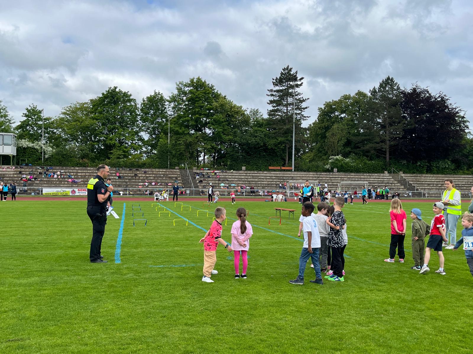 Von 9.30 bis 13 Uhr zeigten die Nachwuchssportler ihr Können beim Laufen, Werfen und Springen. Dabei standen sichtlich der Spaß und das gemeinsame Miteinander im Vordergrund. Es wurde angefeuert und gejubelt, was das Zeug hielt. Außerdem konnten sich die jungen Sportler im Blindenfußball versuchen. Auch Bürgermeister Belke und Oberstleutnant Meyer lieferten sich ein Duell.
