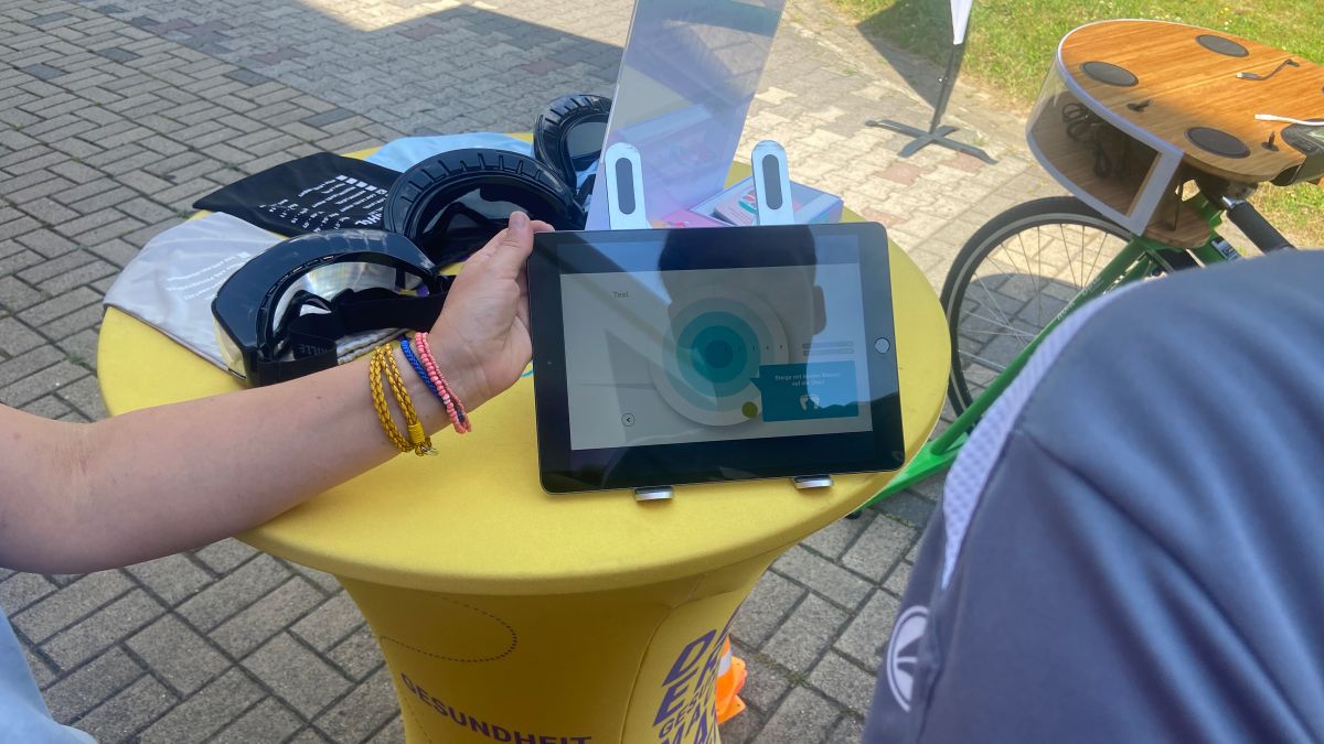 Bei den verschiedenen Stationen war das eigene Bewegungsgefühl gefragt. Auf einem Board konnte die Balancefähigkeit geprüft werden. Mit dem Recharge-Bike erzeugten die Teilnehmenden durch Bewegung Energie und erlebten so den Zusammenhang zwischen Gesundheit und Aktivität. Mit speziellen Brillen, die Sichtbeeinträchtigungen unter Alkohol-, Cannabis-Einfluss und bei Müdigkeit simulieren, konnten sie einen Hütchen-Parcours absolvieren und die Auswirkungen im Gangverhalten beobachten. Auch ein Kartenspiel sorgte mit kleinen Alltagsaufgaben für Aufklärung in den Bereichen Nachhaltigkeit und Wohlbefinden. Sichtlich viel Spaß hatten die Besucher am aktiven Ausprobieren. „Auf diese Weise kann man auch den jungen Leuten spielerisch das Thema Gesundheit näherbringen. Durch das Aktive wird es für viele meist anschaulicher“, sagt Trautmann.