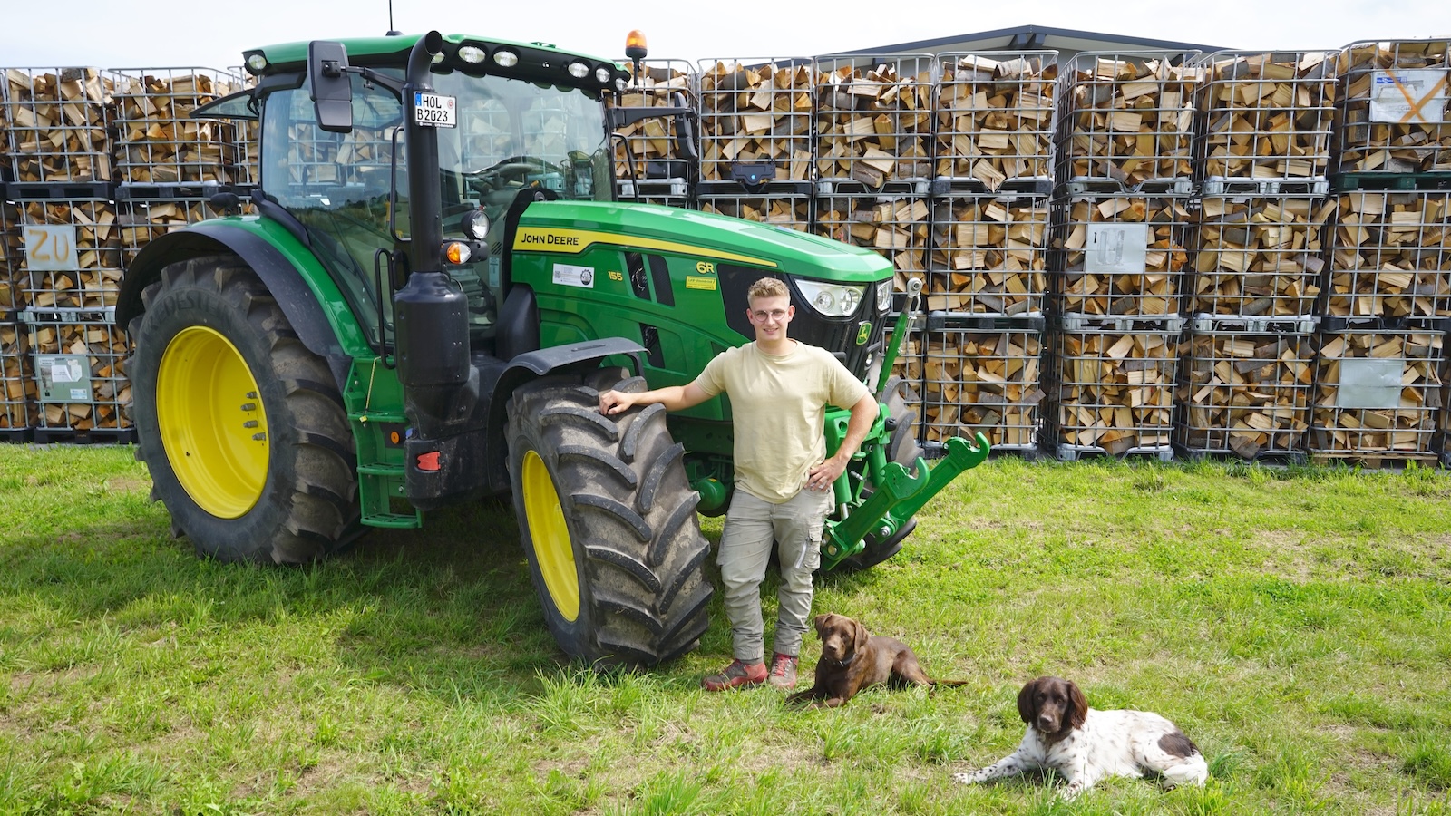 Doch nicht nur beim Thema Brennholz ist Max Bremer der richtige Ansprechpartner. Mit seinem Rückewagen kann er auch Baumstämme aus dem Wald transportieren, auf eine bestimmte Länge sägen und liefern. Auch das Fällen von Bäumen in Gärten bietet er an. Holzrückearbeiten mit einer Winde oder die Aufforstung von Grundstücken ist für den 24-Jährigen kein Problem. „Kleinere Arbeiten mit dem Bagger kann ich ebenfalls relativ zeitnah und flexibel erledigen“, berichtet er. Auch das Mulchen von Böschungen, Wegen oder Wiesen bietet der Stadtoldendorfer an.