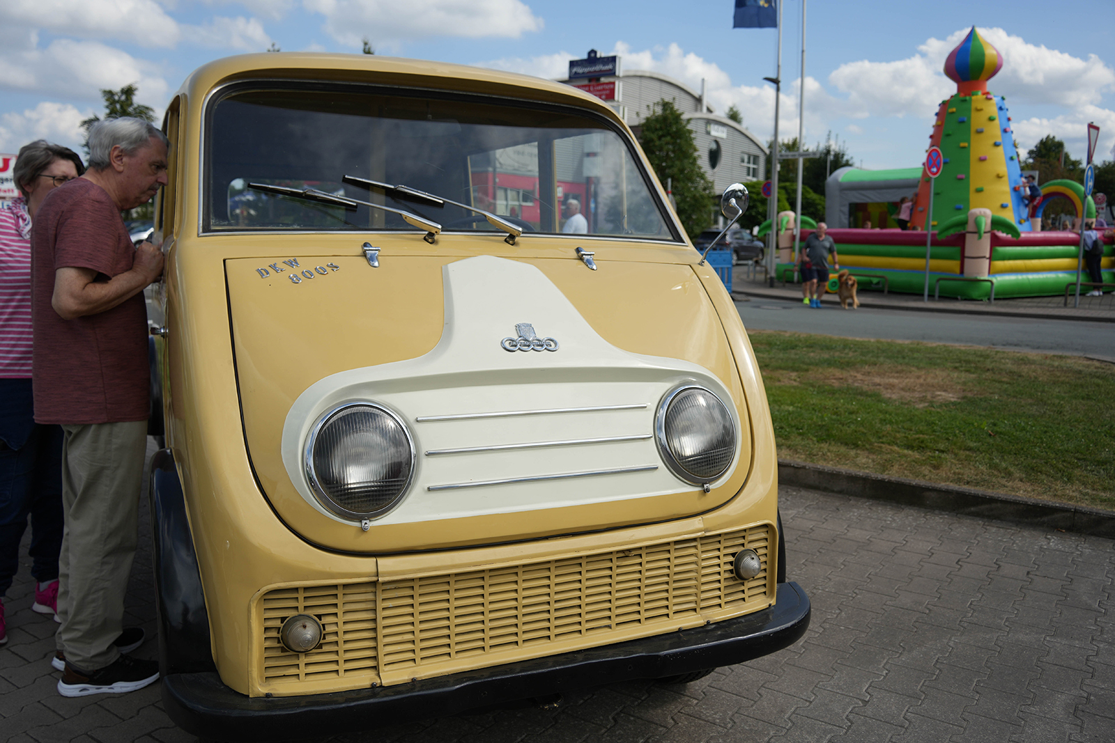 Die Gesellschaft für Technische Überwachung (GTÜ) informierte über ihre Serviceleistungen, wie Hauptuntersuchungen, Fahrzeugbewertungen und Gutachten bei Unfällen. Gegenüber dem Stand der GTÜ präsentierten die Heinser Fittschen ihre Zweiräder der Marken Simson und Suhl. Besonders beeindruckend war eine selbstgebaute Lampe aus Mopedteilen, die vom Heinsener Moped-Club zur Versteigerung angeboten wurde. Das Autohaus Vatterott ersteigerte die Lampe für 1000 Euro, die der Club für wohltätige Zwecke verwenden möchte. Auf dem gesamten Gelände gab es außerdem historische Fahrzeuge, die die Herzen von Auto-Enthusiasten höherschlagen ließen – darunter ein Volkswagen Karmann Ghia, ein „Alpha Shark“ und ein DKW 800.