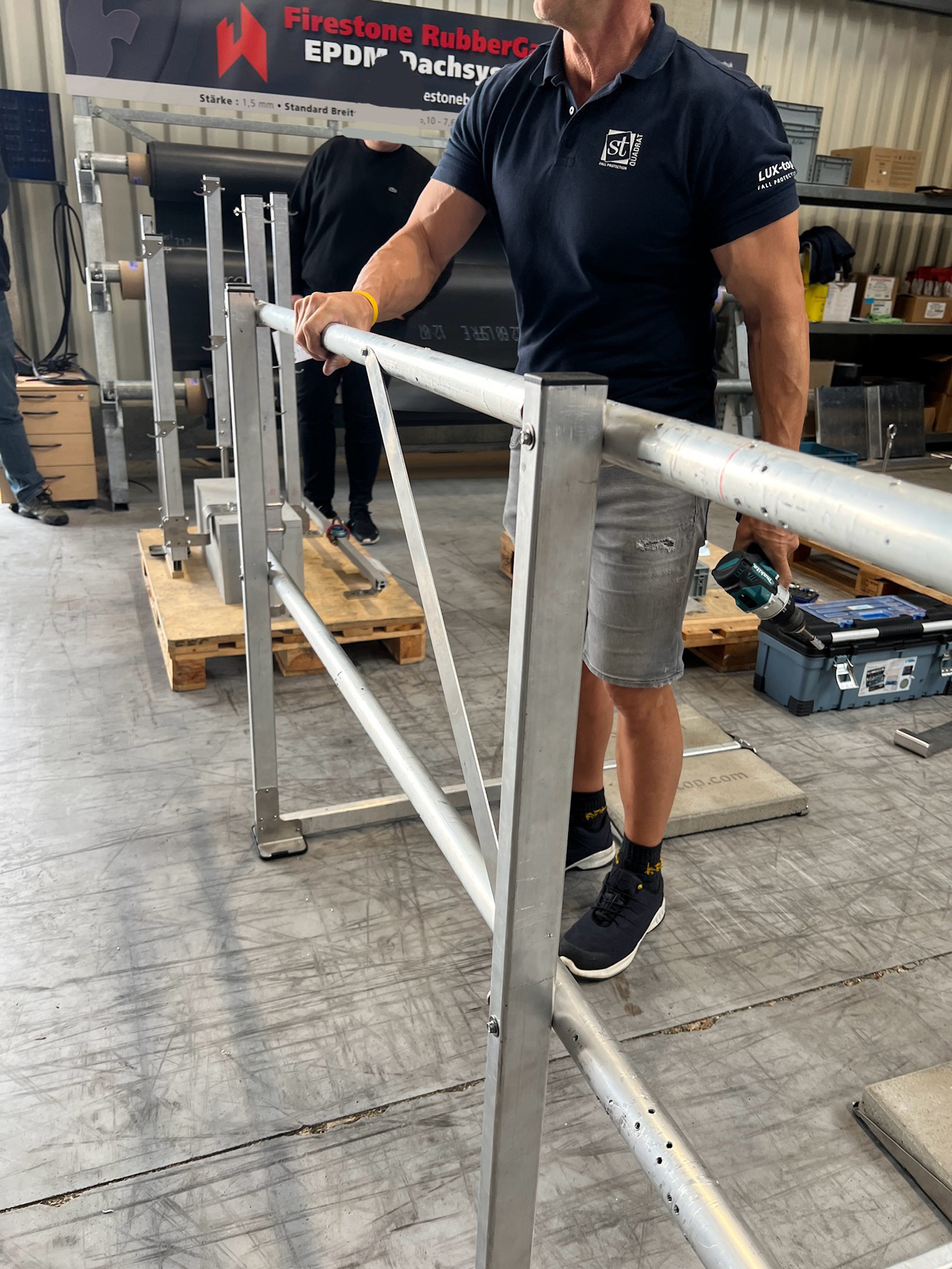 Stand der Technik sind heutzutage sog. Seilsicherungssysteme oder kollektive Schutzeinrichtungen (z.B. Geländersysteme). Aber auch außenliegende Steigleiteranlagen, Attikaüberstiege oder die PSAgA (Persönliche Schutzausrüstung gegen Absturz) wurden geschult und gehören zum Portfolio des Dachdecker-Innungsbetriebs aus Brökeln. Im Jahr 2023 meldet die Berufsgenossenschaft der Bauwirtschaft (BG Bau) 76 tödliche Arbeitsunfälle in Deutschland. Hauptursache dabei: Abstürze von Dächern sowie Stürze durch Dachflächen wie z.B. Lichtkuppeln oder Lichtbändern (Quelle: BG Bau).